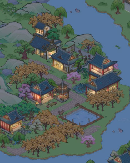解忧小村落原名百鬼小村落,这是一款古色古香的模拟经营类种田手游,游戏以鬼怪为题材,玩法上没有什么强制性的任务或者引导,相对来说很自由,玩家可以自由建造商铺,酒楼,养鸡场,养猪场等建筑,然后获取资源换取铜板从而让你的村落更加繁荣昌盛,再结合其内塑造的世外桃源般的风景以及多种多样的道具物品,可以为玩家带来一场独特的收菜之旅!为此,本次小编带来了解忧小村落抖音版,该版本是解忧小村落官方开发,抖音平台代理推广的抖音版本,在这里拥有很多NPC,玩家可以免费探索丰富的NPC事件和童话故事,在大地图上野餐,进行互动和交流…喜欢的朋友快来下载试试,一起佛系种田,打造人鬼共存的温馨小村落吧! 游戏特色 1、白墙绿瓦,绿树成荫,小河环绕村子而过,白天,孩童田边嬉戏,老农背娄而归,夜晚,百鬼出行,谱写前世未了情缘。 2、这是一个与世隔绝,一个人鬼共存的温馨小村落。 3、在这里,你可以足不出户,体验到五柳先生“种豆南山下,草盛豆苗稀”的快意自然,也可以体验到古人的“碧毯线头抽早稻,青罗裙带展新蒲”,还可以体验到“人鬼情未了”的凄美爱情故事。 解忧小村落抖音版攻略 一、官府怎么快速升级? 1、师爷 他平常大概都是休息中,点他会出来两个选项,对应两个作用,一个是达到升官条件时派遣其入京,等待一段时间后回来告诉你升官成功,具体几分钟忘了,另一个是外出探访,一次15分钟,可以用道具,但道具应该不会缩减探访时间,最后会带回来一个村民,能力职业随机,或者5000铜钱等。 (师爷能点就点了,尽量别闲着,毕竟带回来的人是免费的,但驿馆招募需要铜钱,对于前期铜钱急缺的小伙伴来说,简直不要太友好) 2、捕快 新手指引阶段会解锁个盗窃事件,之后你安排上捕快,在白天或夜间就有几率遇到抓捕小偷的事件,有时候偷100铜钱,有时候200铜钱,选项两个,一个物归原主,选这个你会得到和被窃铜钱等额的铜钱作为谢礼,另一个中饱私囊(没选过,估计也就是私吞100或200铜钱),其余的,目前来看,没见有别的作用。 (小编放了一个捕快,因为收益确实不大,也就是闲着时点一点获得点额外乐趣,至于工作时间,可能是全天,也可能是两个捕快轮班,没注意) 3、打更人 晚上出来逛圈,没发现有额外事件触发或者收益什么的。 总结,官府升到多少级就能入住多少个鬼(找不到入住鬼怪的点“鬼怪——入住”),前期升到九级的样子就行,后面随需要解锁升级的建筑一并升级。 二、布局图推荐 布局思路一:白墙绿瓦,绿树成荫 1、前期最好招募年轻男村民,更快收集木头以及石头,方便更快的搭建房屋建筑。 2、中期我们搭建养殖场以及农场,可以出售产物,这样就可以获得更高性价比了。 3、最后我们建筑的摆放位置,像是养殖场以及农场放在角落里即可。 布局思路二:颜色统一,建筑高低错落 1、采用统一原则,屋顶以及房子颜色最好保持一致,看起来更加协调。 2、这种布局价格更加便宜,玩家可以更加快速的或多资源回报。 3、房屋高低要错落有致,平地搭建高楼看起来更加安全,高处放置平房即可。 白天效果: 晚上效果: 三、全居民职业要求 1、【捕快】:男青、中年 2、【打更人】:男青、中、老年 3、【肉摊老板】:男青、中、老年;屠夫 4、【客栈老板】:(男女)中、老年;掌柜、老板娘 5、【客栈厨师】:男青、中、老年 6、【客栈跑堂】:(男女)青、中年 7、【商贾住宅护院】:男青、中年 8、【商贾住宅婢女】:女少、青年 9、【水田农夫】:(男女)青、中、老年 10、【药田农夫】:(男女)青、中、老年 11、【集市老板】:男中、老年;掌柜 12、【商行老板】:男中、老年;掌柜、账房先生 13、【商行伙计】:男青、中年;担夫、马夫(部分任务有明确的居民职业要求,如担夫、马夫) 14、【药铺老板】:男青、中、老年 15、【医馆大夫】:男青、中、老年;坐堂大夫、游方郎中 16、【医馆药师】:男青、中、老年 解忧小村落食谱配方 一级食谱5个: 烤全鸡=鸡肉 黄金煎蛋=鸡蛋 清蒸鱼=鱼肉 红烧鱼=鱼肉+酱油+糖(或鱼肉+2糖) 一口闷=鱼肉+豆腐+盐 二级食谱14个: 黄金烤猪=猪肉+酱油 清蒸猪肉=猪肉 香辣烤全羊=羊肉 清蒸虾=虾肉 清蒸蟹=蟹肉 猛火炒虾=虾肉+辣椒+盐 沁园满春=虾肉+豆腐+盐 水煮蟹=蟹肉+辣椒 白玉蟹=蟹肉+豆腐 香煎带鱼=带鱼+盐 黄焖鲫鱼=黄鲫+水葱+辣椒 清蒸石斑=石斑鱼+水葱+酱油 香煎鲷鱼片=真鲷+盐 剁椒青鱼=青鱼+辣椒 三级食谱20个: 流连忘返=猪肉+茄子+酱油 水煮鱼=鱼肉+水葱+辣椒 红烧鲤鱼=鲤鱼肉 碧绿滢香=鱼肉+水葱 连丝鱼干=鱼肉+胡萝卜+酱油 红烧对虾=对虾肉 红丝青玉=虾肉+胡萝卜+酱油 红绸满香=虾肉+茄子+酱油 清蒸大闸蟹=大闸蟹肉 葱爆香蟹=蟹肉+水葱+酱油 家常炒蟹=蟹肉+胡萝卜+盐(蟹肉+2盐) 红烧刀鲚=刀鲚+糖+酱油 烤墨头鱼=墨头鱼+水葱+酱油 鲬鱼汤=鲬鱼+黄瓜+盐(或鲬鱼+2盐) 香煎木叶鲽=木叶鲽+盐 金粉世家=东方鲀+水葱+盐 泡椒长吻鮠=长吻鮠+水葱+辣椒 生腌黑纹=黑纹炮弹+白萝卜+盐 酱烧红娘鱼=红娘鱼+水葱+酱油 银鲛土豆=黑线银鲛+辣椒 四级食谱14个: 水煮白菜=白菜 白雪皑皑=猪肉+白萝卜+盐 三鲜鱼片=普通鱼肉+白萝卜+水葱 水煮虾=虾+白萝卜+辣椒 板烧黄鳝=黄鳝+洋葱+盐(或黄鳝+2盐) 红烧白甲鱼=白甲鱼+糖+酱油(或白甲鱼+2糖) 清蒸鲷鱼=金焰笛鲷+水葱 红烧燕鳐鳍=花鳍燕鳐+糖+酱油(或花鳍燕鳐+2糖) 豆腐刺尾鱼=刺尾鱼+豆腐+酱