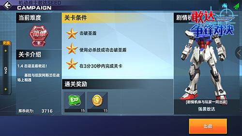 在攻克关卡中,都设计有3项不同的关卡条件,如果达成了,奖励还会更多一些,所以这也是必须要争取的地方。这些关卡条件看似繁多,其实大致为几个方向:时间限定、全灭or击破特定机体、技能成功和指定存活。时间限定这个比较好理解,通常都是在三分多钟内击破敌方角色,这时候就对配置有高战力的角色有需求了,并且单发出力够强也保证了战斗时间的缩短,得以达成目标。在全灭这点,顾名思义,就对高战力更为迫切了。需要注意的是,攻击目标必须要有选择,先消灭对方的僚机。如果干掉是关卡条件中的队长机,反而在某些关卡达成了第一胜利条件,就做不到消灭全部的机体了。击破特定机体如前面所说的反面,对着特定机猛怼就对啦。
