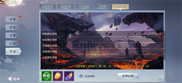 7、人级赛区资格在每次活动前重置,由其余仙盟中战力前4名获得