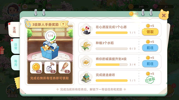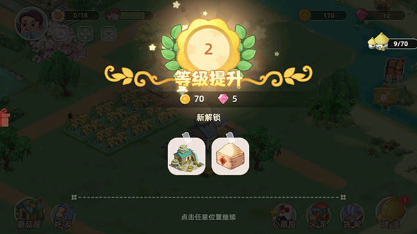 近年来种田经营游戏越来越火,其经典的种植经营和模拟建造玩法,非常适合我们打发休闲时光!而悠闲的小时光游戏手机版就是由芒果TV官方出品的一款模拟经营农场小镇的卡通风休闲游戏,现已更名为向往的生活。游戏采用了治愈的卡通画风,打造了有着大量品种不同的作物、小动物的温馨田园小镇,玩家可以在这里远离城市喧嚣,经营农场小镇,装扮自己的蘑菇屋,发展种植、养殖、建设城市以及开展农业贸易,享受简单的快乐,尽情感受牧场生活的惬意,非常治愈! 不仅如此,悠闲的小时光游戏最新版内还有着结合农场经营的故事主线,玩法内容更加充实,玩家你可以通过选择购买新的种子和装备,增加种地的规模,收获更多金币,还可以通过完成小镇居民的心愿任务来获得奖励,不断提升等级,增加居民人口,解锁更多有趣的设施,越来越繁荣!让我们一起远离匆忙的城市生活,成为蘑菇屋的一份子,与村民一同打造小村庄,找寻自己心中向往的生活吧! 游戏特色: 1、【建造】 自由编辑地图,装饰自己独有的村庄。 2、【种植】 小麦、玉米、油菜花…应有尽有。 3、【畜牧】 喂养小鸡小羊小猪,产出鸡蛋羊毛猪肉… 4、【装扮】 装扮蘑菇屋。 5、【运输】 来完成心愿订单吧~ 游戏攻略: 一、新手怎么玩? 1、打开游戏,点击“开始游戏”。 2、左上角是个人信息,右上角是钻石和金币,点击图示处气泡处进入蘑菇屋。 3、蘑菇屋需要进行打扫,点击气泡内的装修图标,进行打扫清理。 4、布置蘑菇屋需要用到装修道具,道具可以在右下角的五斗米仓库兑换。 5、五斗米仓库是村民自发设立的互助仓库,用特定的农作物或农产品即可兑换装修道具使用哦。 6、农作物或农产品需要通过在田里种植获得,点击田地再点击底部出现的农作物种子,就可以播种了。 7、一段时间过后,农作物成熟,点击利用镰刀进行收割。 8、还可以前往旁边的鸡舍看看小鸡们,将饲料拖动到动物上,即可完成投喂,获得鸡蛋。 9、打开主界面右下角的建造,花费金币可以为你的小镇建造房屋、社区、工厂、耕地以及装饰物等。 10、完成种植、建造以及心愿任务,就可以获得相应的奖励金币,任务界面可以查看主线和日常任务哦。 11、努力建造,种植,经营发展好你的小镇,不断升级解锁更多区域吧! 二、嘉宾如何获取? 1、嘉宾系统介绍 玩家们和“神秘嘉宾”们的田园生活即将启程~ 让我们欢迎所有远道而来的嘉宾,在温馨有爱的小屋里,和新伙伴叙写回忆。 嘉宾为了让村庄的建设更上一层楼,他们义无反顾的提供帮助,为共建美好家园。 2、嘉宾获取 “嘟嘟~~”快看那辆驶向小村的大巴! 听说村长大人说呀,大巴上坐着的都是从各个地方过来,想要感受安静恬淡的田居生活的神秘客人。 他们带着自己的独特的故事与小村居民和睦共处,让我们热烈欢迎他们的到来,希望在这里大家都可以放下心中杂念,一起感受乡村自然之美~ 3、好感养成 阳光散落的屋檐下,和大家的朝夕相伴; 温馨有爱的小屋里,和伙伴们叙写回忆; 这也许只是一间平常的小屋,却有你最向往的生活。 把你的祝福与问候传递给你所喜欢的他&她吧,一起倾听他&她的故事。 优势亮点: 1、这里拥有各种各样的农作物,你可以细心的对他们进行照料。 2、而且还有很多不同的好玩模式,都是可以进行体验的。 3、玩家可以去往农场中不同的地方,每一个角度都是非常美丽的。 4、这里还有小鸡,你需要对小鸡进行很好的喂养,它们才能够长大,卖得好价钱。 小编推荐: 1、游戏也没有任何的难度,操作非常简单,可以让你快速上手操作。 2、这里拥有着不同的小鸡培养模式,你都可以自由的进行选择。 3、画风设计非常细腻的,可以让你感受到农场的浓浓气息。 更新日志: v1.7.1.751版本 【内容新增】 1、新增一键收纳再编辑的功能; 2、新增劳动手册S2; v1.6.1.700版本 修复火车订单加速显示未刷新问题修复轮船加速显示未刷新问题 v1.5.1.595版本 6.6首发上线版本现已推出! 【自由建设】 ——打造心中专属“桃源”你将亲自参与村庄的每一步建设,在平凡的日子里活出向往的生活 【畜牧耕种】 ——与土地来个亲密接触种田种树养鸡养牛,藏在淤泥里的果实会告诉你,一切都值得 【嘉宾来访】 ——开启生活小确幸生活如果有开关,那朋友的出现就是一键快乐,与三五好友一起静静坐着,世界变得简单而纯粹 【萌宠相伴】 ——快乐也许很简单蘑菇屋宠物家人们,早已等候多时,快来跟小O小H玩耍吧 【美味解锁】 ——让味蕾告诉你答案昔日不食人间烟火,如今不离锅碗灶台;每一份美食,都藏着一段难忘的回忆 |