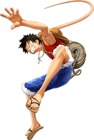人称“草帽小子”路飞。梦想是找到世界第一的宝藏、成为航海王!!小时候吃下橡皮之果变成了橡皮人,普通的打击和电击对他来说都是无效的。通过橡皮的反作用力打出的一击,力量和速度都十分超群!!但他是个大胃王,非常贪吃,尤其喜欢吃肉,经常偷吃山智放在梅利号冰箱里的食物。平时偶尔还会哼一些奇怪的歌。虽然经常会犯傻,但实际是一位心系同伴的好船长,深得伙伴们的信任。