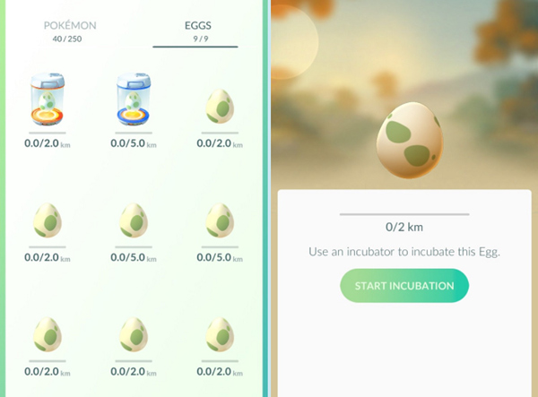 获取神奇宝贝的方法除了收服、进化以外,还有孵蛋这个方法。当你在宝可梦驿站获得宝可梦蛋后,可以点选在自家图鉴左划查看,蛋有分成2km 、5km 、10km 三种,距离越远的蛋孵出来的神奇宝贝越稀有。一定要使用孵蛋器才能孵化神奇宝贝。每种孵蛋器一次只能敷一颗蛋,除了初始无限孵蛋器,也可以到商店购买高级孵蛋器。