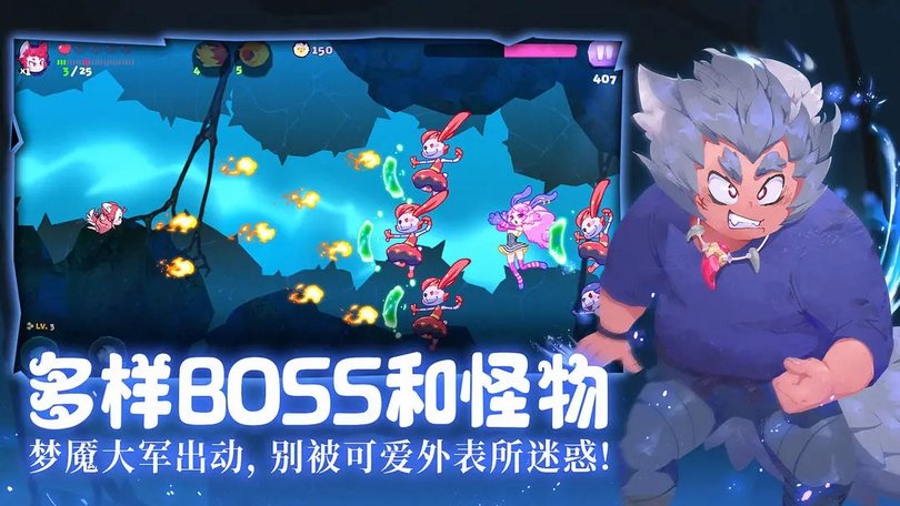 哞哩的长梦游戏手机版是一款超棒的节奏射击类游戏。卡通的游戏画面,趣味的射击挑战,完美的游戏创意内容,精心设计的各种台词,时尚炫酷的风格主题,带给你无穷的乐趣! 游戏优势 两种对战模式:经典对战你追我赶,道具对战全新体验; 全新对战饰品:华丽的效果,强力的属性,排名耍帅两不误; 对战兽王潘多拉:多人对战属性大幅加成,强势登场,还是美女哦! 游戏亮点 各种不同风格的小可爱均可以使用 游戏内收录各种可爱的冒险小姐姐 音乐节奏游戏怀跑酷游戏的完美结合 解锁更好玩的模式和更具挑战性的关卡 将音乐与跑酷结合的完美创意 音乐曲目数量绝对令人满意 游戏特色 1、不同风格的音乐对应特定的场景主题,敌人与BOSS。 2、华丽绚烂时尚酷炫的美术别具一格。 3、基础包内置 30 首精心挑选的曲目,持续更新曲目! 4、传统的音乐游戏玩法与跑酷游戏爽快的视觉表现相结合为你带来前所未有的心流体验。 5、小姐姐敲可爱!小宠物敲可爱!敌人也敲可爱!就连反派大魔王都能萌得你流鼻血!! 6、精心设计的台词,日语声优配音。 游戏玩法 【感受经典街机射击玩法的爽感】 游戏由一个人独立开发完成,灵感来源于fc游戏机上的童年经典飞行射击神作《沙罗曼蛇》以及其他经典游戏,游戏玩法偏向横版飞行弹幕射击,一旦向前就没有回头路,玩家需要勇往直前,利用弹药和近身攻击的组合技,为小哞哩杀出一条血路。 【奇思妙想的关卡场景设计】 讨厌一切犬科动物(包括小哞哩)的猫之森、家中一霸“鸭子大王”所占领的干涸池塘、有许多山羊和大牛的冲撞平原......你将随着哞哩前往这些稀奇古怪的地方,与占据其中的怪物和BOSS激战,还要小心飞行中的障碍物和会动的地图哦~ 【多种弹药类型和技能】 游戏中有多种弹药类型攻击方式,还有多种技能供玩家选择和使用,玩家可以升级自己的技能和属性,通过近战爪击、远程弹药和技能释放等攻击方式组合,成功击败来势汹汹的怪物们。还可以爆发怒气使自己进入“超级状态”,弹指间爽快解决大片敌人! 【多样化的BOSS和怪物】 在噩梦世界中,玩家在不同的区域会面对不同类型的怪物们和BOSS,各有独特的造型与攻击手段,从倒开水的猫头鹰到横冲直撞的疯牛,技能从突进到各种风刃弹药攻击,考验你应对各种难关的反应能力。 【可爱的2D手绘风格和剧情】 游戏为元气可爱的2D手绘画风,故事讲述了小狐狸-哞哩在现实世界和噩梦中发生的故事,展现了小哞哩天马行空的想象力和活泼有爱的狐狸一家人。 关于我们 由一人独立开发的横版飞行弹幕射击独立游戏,还原FC街机经典飞行射击玩法。玩家将扮演小狐狸-哞哩,深夜被妈妈催上床睡觉,在梦境世界里与怪物交战。游戏中有各种奇思妙想的关卡设计、多种怪物及数个强大的BOSS。弹药技能搭配、收集道具、积攒大招,爽快地消灭挡路的大批敌人,帮助哞哩从噩梦中醒来吧! 更新内容 v1.0.4版本 增加固定摇杆模式,在游戏主界面按键设置处可进行设置 增加自动射击选项,进入战斗后,在右侧可激活自动射击和自动爪击 |