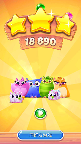 Cookie Cats Pop是一款消除类益智闯关游戏,延续了经典的泡泡龙玩法。游戏以拯救可爱的小猫为目标,通过消除相同颜色的泡泡来解救它们。游戏操作简单,只需点击要射击的位置即可发射泡泡。爆开气泡后,小猫们将会被解放,完成关卡的挑战。 Cookie Cats Pop的画面精美靓丽,场景的布局和角色的形象都非常Q萌可爱。游戏采用了上百个不同的关卡设计,随着游戏难度的增加,你可以合理地使用游戏道具来顺利闯关,解救更多的猫咪,一同对抗邪恶势力。游戏中还有许多可爱的小猫咪会为你唱出动听的歌谣,增加了游戏的趣味性。 游戏特色: 1、简单又让人上瘾的益智游戏!通过爆开美味的曲奇气泡,拯救可爱的小猫。 2、关联邻近地区游玩数百个挑战性关卡,让你享受消除的乐趣。 3、参加每日活动,赢取大量免费金币和加速器,帮助你更好地闯关。 4、许多的可爱小猫将会为您唱出动听的歌谣,给你带来更多的乐趣。 游戏亮点: 1、玩法经典,泡泡龙消除游戏为玩家提供熟悉的游戏体验。 2、关卡众多,拥有140个超有趣的关卡等待你的挑战。 3、画面唯美,草原、森林、海滩、雪地等唯美萌场景让你流连忘返。 4、奇趣道具,七种不同的奇趣道具可以帮助你轻松闯关。 5、萌宠角色,五个可爱的小猫咪角色任你选择,萌死人不偿命。 6、游戏特效,绚丽的消除特效,动态的关卡泡泡,萌萌哒的游戏音效让你沉浸其中。 7、特色障碍,关卡中还有石头泡泡、彩虹泡泡、分裂泡泡、变色泡泡等多种特色障碍等你来挑战。 游戏优势: 1、采用关卡闯关的形式,拥有超过300个关卡等待你的挑战。 2、你需要从底部发射不同颜色的炮弹,通过消除泡泡来解救小猫咪。 3、游戏内置简单粗暴的剧情,让你更容易理解游戏的背景故事。 4、画面可爱,玩法简单上手,适合在闲暇时间享受游戏乐趣。 5、每个关卡的剩余步数将转化为玩家的最终得分,挑战高分成为游戏的目标。 Cookie Cats Pop是一款充满乐趣和挑战的消除类益智闯关游戏,快来下载体验吧! |