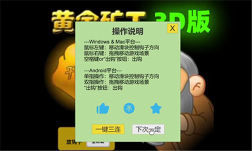 游戏简介: 《3D黄金矿工》是一款创意性的休闲游戏。玩家扮演一名勇敢的矿工,通过操作钩子抓住金矿以获得金币奖励。这款游戏以简单易上手、轻松休闲为主打,由玩家自制的版本带来全新的游戏模式,让玩家能够完美体验游戏的乐趣。 游戏特色: 1、3D画面:游戏中采用了精美的3D画面,让玩家能够身临其境地进行冒险。多种游戏场景的解锁增加了游戏的趣味性。 2、华丽的抓捕体验:3D画面为玩家带来更好的抓捕体验。玩家需要晃动绳子,抓住金子。金子的数量非常之多,需要玩家依靠自己的技术才能获得。 3、自由的角度调整:与平面左右摇摆不同,3D版本为玩家提供了自由的角度调整,让玩家能够更好地冒险。 4、多种游戏场景:玩家身为矿工,需要不断进行冒险并解锁多种游戏场景。不同的场景带来了不同的挑战,需要玩家发挥自己的智慧和技巧。 5、获得更多金币:玩家的任务是摇钩抓住金矿,金矿越大,最后获得的金币数量就越多。通过获得金币,玩家可以解锁更多的关卡和道具。 游戏亮点: 1、每个关卡有规定的时间限制,玩家需要在限定时间内抓住一定数量的金矿才能过关。不同关卡的时间限制各不相同,增加了游戏的挑战性。 2、钻石的价格最高,商店中包含了多种类型的物品供玩家购买。玩家需要善于选择,合理利用自己的金币购买合适的道具。 3、简单易上手的游戏玩法,钩子晃动的时候需要玩家准确瞄准黄金。游戏的操作简单,让玩家能够轻松上手。 4、游戏关卡数量众多,玩家通过获得金币可以进入下一关。不同关卡之间的玩法完全不同,增加了游戏的丰富性和多样化。 5、游戏版本为3D,创意性的玩法让玩家能够更好地操作,更好地感受游戏的乐趣。游戏的画面精美,给玩家带来了更好的视觉体验。 游戏玩法: 玩家通过晃动绳子,控制钩子抓住金矿。钩子晃动时需要玩家准确瞄准黄金,抓住金矿的数量越多,最后获得的金币奖励就越多。 游戏优势: 1、游戏的操作简单易上手,让玩家能够轻松上手游戏。 2、游戏关卡数量众多,玩家可以不断解锁新的关卡,增加游戏的可玩性。 3、创意性的玩法和精美的画面使玩家能够更好地体验游戏的乐趣。 4、游戏中的道具和商店系统充实丰富,玩家可以通过购买钻石来获取更多的道具。 5、游戏版本为3D,给玩家带来更好的视觉体验和游戏操作的自由度,让玩家对游戏更有参与感。 |
