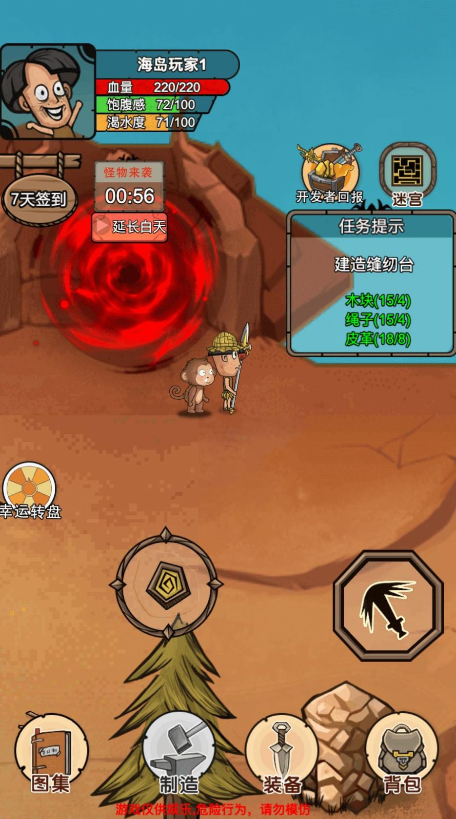 《荒岛生存记》是一款创新的岛屿生存游戏,玩家将扮演一个被困在荒岛上的幸存者,必须利用有限的资源和智慧来生存。游戏设有丰富多样的任务和挑战,给玩家带来刺激的体验。玩家需要面对危险环境和生存困难,通过合理的决策和策略,找到食物、水源和庇护所,并与其他生存者合作,以尽可能延长自己的生存时间。 游戏特色: 1、多样化的玩法:游戏提供丰富多样的玩法,玩家可以通过捕鱼、狩猎、采集等方式获取资源,并制作各种工具和武器。 2、逼真的生存体验:游戏中的原始环境和动态天气系统让玩家在荒岛上感受到真实的生存挑战,包括饥饿、口渴、疲劳等多种生存需求。 3、精美的画面和音效:游戏采用高品质的画面和真实的音效,打造出逼真的岛屿环境,让玩家身临其境地体验岛上的种种生活情景。 4、策略性的决策:在游戏中,玩家需要合理分配资源,制定生存计划,并时刻注意岛上的变化,以应对不断出现的挑战和危险。 5、社交互动和竞争性:玩家可以与其他幸存者进行合作,共同建设庇护所,也可以与其他玩家展开刺激的竞技对战,测试自己的生存能力。 游戏亮点: 1、自由建造:玩家可以根据自己的喜好和需求,在荒岛上建造居住、工作和娱乐场所,让岛屿逐渐变得繁荣起来。 2、夜晚探险:在夜晚,岛上的危险增加,玩家需要在自己的建筑物内尽量待在安全区域,同时也可以尝试在黑暗中寻找珍贵资源或探险。 3、冒险紧张感:游戏中各种挑战和任务将为玩家带来紧张刺激的体验,通过完成任务和战胜困难,玩家将获得更多的奖励和成就感。 游戏玩法: 1、资源获取:玩家需要通过捕鱼、狩猎、采集等方式获取食物、木材、石头等生存资源,并合理利用它们来满足自己的需求。 2、技能提升:玩家可以通过学习和实践,提升自己的技能和能力,例如制作武器、建筑和陷阱等。 3、任务挑战:游戏中设有多种任务和挑战,玩家需要完成它们来获取奖励和解锁更高级的内容。 4、社交互动:游戏支持多人在线模式,玩家可以与其他幸存者合作,共同建设庇护所,并在可玩竞技模式中与其他玩家进行对战。 5、策略决策:玩家需要根据岛上的情况和自身的需求,制定合理的生存计划和策略,并及时调整和应对各种突发情况。 游戏优势: 1、策略技巧:游戏中玩家需要熟悉生存环境和资源分布,掌握各种生存技巧和策略,才能更好地生存下来。 2、精美画面:游戏采用高品质的画面和精美的建模设计,给玩家带来视觉享受,在真实的环境中尽情探险。 3、丰富关卡:游戏拥有丰富多样的关卡和任务,玩家可以根据自己的兴趣和能力选择适合自己的挑战和冒险。 4、独特体验:游戏以岛屿生存为主题,给玩家带来全新的游戏体验,让玩家在游戏中感受到冒险和自由的乐趣。 5、持续更新:游戏开发团队会不断更新游戏内容和功能,为玩家提供更多的挑战和乐趣。 |