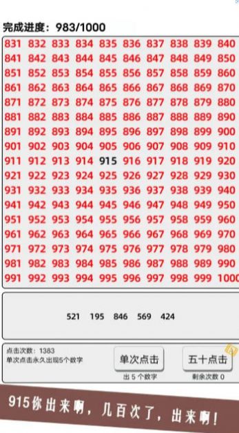 欧皇还是肝游戏安卓版是一款有着丰富数字点击技巧的小游戏,玩家需要用自己的点击方式来完成你的游戏任务,还有诸多的点击技巧等你来尝试,你必须从数字0 到99999每一个都需要的点击一次,那样的手指点击度,可以说是非常困难的,需要大量的时间。 游戏特色: 1、玩法一目了然,只需要持续不断的点击数字即可。 2、难度就是一个,那就是时间是你最大的挑战。 3、只有恒心才是你唯一的拦路虎,想要成为肝帝,还是很有挑战的。 游戏攻略: 1、在游戏中,需要紧紧盯着数字,掌握好节奏,尽可能地在规定时间内点击更多的数字。 2、要多练习,熟悉游戏规则和操作方法,掌握好游戏技巧,自然能够取得更好的成绩。 3、尽量避免误点,因为每次误点都会降低你的分数,影响你的游戏体验。 游戏体验: 1、在游戏中,数字会不断地出现在屏幕上,需要玩家快速点击数字来获取得分。 2、通过点击数字,可以获得不同的积分和时间加成,帮助玩家更快地获得高分数。 3、设置了不同的难度等级,玩家可以根据自己的实力来选择适合自己的游戏难度,挑战自我。 游戏点评: 1、充满了挑战性和乐趣,可以让玩家快速进入状态,享受到游戏带来的乐趣。 2、设置了多种不同的难度等级,可以满足不同玩家对游戏难度的需求。 3、欧皇还是肝帝游戏是一款非常不错的数字点击游戏,非常值得尝试。 |