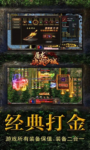 《屠龙决战沙城》是一款让玩家重返传奇的游戏,无论是一个人玩还是喊上兄弟一起玩,都能带给你快乐。游戏中,你可以与其他玩家成为兄弟,一起攻城略地,击败各种boss,在野外刷怪还能爆出各种极品装备。就算离线也能一直刷怪!赶紧加入这场屠龙战斗,让你重拾传奇的乐趣! 游戏特色: 1、独创异兽特技:异兽系统能够强化主角技能,搭配多种酷炫萌宠,相互牵制,让你体验战斗的极致乐趣。 2、多元竞技玩法:游戏提供降妖除魔、竞技场、野外BOSS、仙盟战、跨服战、挖宝藏等多种玩法,让你永不停歇地享受游戏乐趣。 3、超级连击技能:升级技能可以提升连击数,让战斗效果变得华丽,让你体验到与格斗游戏相似的爽快打击感。 4、全开放式交易:游戏内具备拍卖行、摆摊、面交等功能,全开放式自由交易。你不仅能玩得尽兴,还能通过交易赚取财富,让你在游戏中制霸全区。 5、沙城争霸天下:还原最真实最热血的沙巴克城战,每周三次夺城,带你体验热血沸腾的千人同屏PK盛况。 游戏亮点: 1、全方位自由PK:在游戏中,除了各个城市中心的一小块安全地带无法进行PK外,其它任何地点都可以进行任意PK。你有兄弟,有钱,就能欺我兄弟,就得死! 2、携手兄弟并肩作战:与兄弟默契配合,战胜任何对手。这种感觉会让人无限向往,让你真切地感受到战斗中的团队协作与胜利的喜悦。 3、精良的游戏场景与真实的游戏画面:游戏场景制作精良,画面真实,让用户的游戏体验感非常强烈。深层次的游戏画面带入感,为玩家构建真实环境体验。 4、独特的异兽养成系统:捕捉不同的异兽,培养它们成为自己的专属萌宠。在必要的时候,你还能够霸气变身,骑在它们身上,展现专属坐骑的威力。 5、经典打金玩法:游戏内所有装备都能保值,高阶神装可以进行回收、进阶、融合、交易,让你全自由支配财富,实现自己的打金梦想。 游戏优势: 1、多样化的玩法:游戏中提供了丰富多样的玩法,包括竞技战斗、野外挑战、商业贸易等等,让你从不同的角度体验游戏乐趣。 2、自由度高:游戏中没有太多的限制,你可以自由选择搭配技能,自由交易装备,自由PK等,尽情享受游戏的自由度。 3、强大的社交系统:游戏中可以与其他玩家成为兄弟,一起攻城略地,共同战胜强敌。在游戏中建立起真正的友情,并一起迎接游戏中的挑战。 4、高度还原传奇乐趣:游戏致力于将传奇的乐趣完美还原,让玩家可以重温当年的激情与快乐,再次感受到传奇的魅力。 5、全新的打怪、爆装机制:游戏中的怪物刷新机制非常有趣,每次打怪都有机会爆出各种极品装备。即使你离线,也能继续刷怪获取装备。 通过这款《屠龙决战沙城》游戏,你将重返传奇的快乐,与兄弟一同战斗,攻城略地,挑战各种boss。在这个游戏中,你将体验到独创的异兽特技系统,多元竞技的玩法,超级连击技能的华丽战斗以及全开放式交易的乐趣。游戏中的沙城争霸更加引人入胜,让你体验到真正的热血与荣耀。快来加入《屠龙决战沙城》,重温传奇的乐趣吧! |