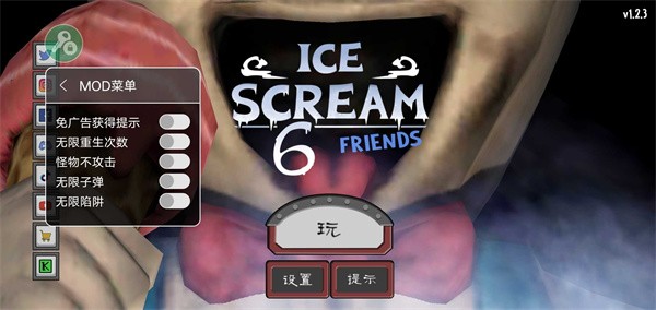 恐怖冰淇淋6内置作弊菜单版是一款非常经典的恐怖解谜手游。在这款游戏中,玩家将扮演一名冒险者,进入冰淇淋工厂展开一场惊险刺激的冒险之旅。面对各种谜题和难题,玩家需要灵活运用自己的智慧和技巧,解决问题,躲避怪物的追杀,最终成功逃离工厂。 辅助菜单: 1、免广告获得提示:玩家可以无需观看广告即可获得游戏的提示,帮助玩家更快地解决问题。 2、无限重生机会:玩家可以无限次数地重生,不必担心失败后游戏结束。 3、怪物不攻击:怪物将停止对玩家进行攻击,增加游戏的畅玩度。 4、无限子弹:玩家的子弹数量将不再有限,可以随意使用。 5、无限陷阱:玩家可以无限次使用陷阱,更好地对抗敌人。 游戏特色: 1、探索冰淇淋工厂:玩家将置身于冰淇淋工厂中,探索其中隐藏的谜题和秘密。每个角落都可能蕴藏着惊险刺激的冒险。 2、融合不同类型的解谜玩法:游戏中融合了多种不同类型的解谜玩法,玩家需要考验自己的智力和技巧,解锁机关和门户。 3、打败恐怖冰淇淋怪人罗德:游戏的目标是打败恐怖冰淇淋怪人罗德,并解救被困的小伙伴们。玩家需要善用各种道具和陷阱,击败罗德并完成任务。 4、剧情紧凑:游戏的剧情紧凑扣人心弦,带给玩家紧张刺激的游戏体验。扮演冒险者的玩家将沉浸在恐怖的工厂环境中,与时间赛跑。 5、精美的画面和恐怖音效:游戏拥有精美的画面和逼真的音效,给玩家带来沉浸式的恐怖氛围,增加游戏的可玩性和吸引力。 游戏亮点: 1、非常有趣的恐怖冒险解谜玩法:游戏通过将恐怖元素与解谜玩法相结合,创造出非常有趣和独特的游戏体验,吸引了众多玩家。 2、精美的游戏画面和逼真的音效:游戏具有精美的游戏画面和逼真的音效,营造出恐怖的氛围,使玩家更加身临其境。 3、手游操作简单:游戏的操作非常简单,只需要通过屏幕点击和滑动即可完成操作,使得玩家可以轻松上手。