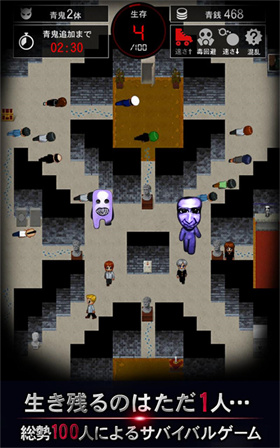 青鬼在线版为玩家带来青鬼系列的全新游戏,加入多人生存的玩法,支持最多一百名玩家共同游玩,进入到青鬼的房间之中,大量的陷阱阻挡着你的去路,获取其中的宝箱和道具,不断地存活更长的时间,挑战更高的排名,享受欢乐的游玩时光。 青鬼在线版玩法特色: 1、多种不同的模式选择,除了多人的生存,还有对抗的玩法,每种都有十足的乐趣。 2、大量的角色类型,每种都具有独特的能力,根据自己的喜好选择,在适合的时机展开对决。 3、操作的方式非常的简单,进行指尖的微操,每个玩家都能快速上手,收获诸多挑战。 青鬼在线版怎么玩: 1、100名参与者和青鬼在线生成(其中100名也包括NPC),玩家控制100人当中的其中一个,逃离青鬼的追踪,直到最后一个获胜。 2、上下左右移动手指控制人物,被青鬼抓住就算游戏结束,青雾区的长度留下来很危险,随着时间的移动安全范围也会越来越小。 3、地图里面也有宝箱可以获得,每个宝箱里面的道具都不一样,可能是:防毒面具、鞋子等等,但是有的宝箱里面可能是陷阱哦! 青鬼在线版游戏介绍: 【标准!100人生存模式】 100人VS青鬼……! 100人被困在一个封闭的房间里 只有最后一个能活下来……嘎嘎 你能成为最后一个并且能够安全逃脱吗? ? 【多种游戏模式,海量地图】 1、大家齐心协力求生存的Aouuesu V模式和出现超难关卡的七井试炼模式现已推出! 2、逃离各种类型的蓝魔,例如高速蓝魔和巨型蓝魔! 【成千上万的皮肤和宠物】 1、从数以千计的皮肤中寻找你最喜欢的皮肤! 2、一些可以进化的超级稀有皮肤!? 3、你甚至可以带一只宠物一起玩! 【玩很多游戏,争取最高排名!】 1、排名除以周期“赛季排名”每周举行! 2、获得更高等级,获得可在游戏中使用的专属皮肤和光环! |