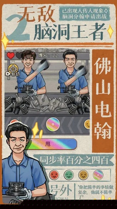 无敌脑洞王者2免广告是一款由指零工作室开发、乐辰游戏发行的趣味解谜闯关小游戏。这款游戏不仅带来多样魔性挑战闯关关卡,还融入了大量网络上爆火有趣的梗,极大地考验了玩家的观察力和反应能力,为玩家带来了无尽的乐趣。 游戏特色: 1、多样化的关卡内容:无敌脑洞王者2中的关卡内容非常丰富多样,包括了恐怖解密、迷宫探险、脑经急转弯等多种风格。每一个关卡都带来了不同的体验,让玩家不断接触到新的挑战,保持游戏的新鲜感。 2、独特的脑洞问题:游戏中的脑洞问题种类繁多,不仅有经典的找茬玩法,还有恐怖解密关卡和脑经急转弯等。这些问题既考验了玩家的观察力,又锻炼了他们的思维能力,让玩家在解题的过程中不断挑战自己的智慧和想象力。 3、恐怖解密关卡的刺激感:在恐怖解密关卡中,玩家需要解决各种谜题和挑战,同时还要面对恐怖的场景和音效。这种紧张刺激的氛围让游戏更加刺激有趣,让玩家充分感受到游戏带来的惊喜和刺激。 4、丰富多样的道具系统:游戏中提供了各种功能多样的道具,如放大镜、橡皮擦、指南针等。这些道具可以帮助玩家更好地完成任务和解决谜题,增加了游戏的可玩性和挑战性。 5、与其他玩家的交流互动:如果玩家需要,还可以与其他玩家进行交流和分享游戏经验。这种交流互动可以加深玩家之间的联系,让玩家们共同进步,共同探索更多有趣的游戏内容。 游戏亮点: 1、持续更新的关卡内容:无敌脑洞王者2承诺会不断更新和丰富游戏中的关卡内容,让玩家能够长期保持对游戏的热情和兴奋感。随着新关卡的推出,玩家可以不断挑战自己,不断寻找新的解谜乐趣。 2、考验观察力和反应能力:在游戏中,玩家需要仔细观察题目和收集线索,并制定相应的解题策略。这要求玩家具备过人的观察力和反应能力,在短时间内作出正确的判断和行动。 3、丰富多样的解谜风格:无敌脑洞王者2中的解谜风格非常丰富多样,涵盖了找茬、恐怖解密、迷宫探险等。玩家可以根据自己的兴趣和喜好选择关卡,享受不同风格带来的乐趣。 4、挑战极限的脑洞问题:游戏中的脑洞问题既有趣又具有挑战性,玩家需要发挥非同寻常的思维和想象力来解锁各种问题。这种挑战激发了玩家的创造力和想象力,让他们可以在游戏中展现自己的智慧和游戏技巧。 5、放松心情的休闲游戏:无敌脑洞王者2以轻松愉快的语言风格和有趣的内容为玩家提供了一场休闲治愈的游戏体验。玩家可以通过解谜闯关,放松心情,释放压力,享受游戏带来的乐趣和欢笑。 游戏测评: 无敌脑洞王者2是一款充满趣味和挑战的解谜闯关小游戏。通过观察、收集线索、制定策略、完成任务等步骤,玩家可以体验到不同风格的关卡,锻炼自己的观察力和思维能力,并与其他玩家进行交流和分享游戏经验。快来挑战这款游戏,展现你的智慧和游戏技巧吧! |