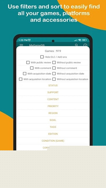 mygamedb安卓官方版是一款专为游戏玩家设计的管理平台,旨在帮助玩家更好地管理自己的游戏数据。如果你手机上的游戏太多太杂,这款工具将为你提供帮助。它拥有强大的管理系统,可以管理你已经添加的游戏,你可以设置某个游戏的权限、移除某个游戏等。 软件特色: 1、允许您管理您的视频游戏、平台和配件的集合。 2、添加您的游戏、平台、配件以及有关它们的其他信息以管理您的整个收藏。 3、这不是模拟器,也不是玩游戏的应用程序。它旨在管理您的游戏收藏。 软件优势: 1、支持添加超过165,000个游戏、1600个平台和2300个配件。 2、提供详细的游戏信息填写功能,包括状态、地区、玩过的时间、副本、备注、购买日期和购买价格等。 3、可以使用多个标准对您的收藏进行过滤和排序,非常便捷。 4、允许将您的收藏导出为、csv、、txt和、pdf格式的文件,方便您在无网络连接的情况下查看。 5、提供统计数据,帮助您了解其他玩家对游戏、平台、配件的收藏情况。 软件亮点: 1、可以使用多种方式搜索和添加游戏,如扫描游戏条形码、从Steam、PSN和Microsoft Xbox账户中搜索游戏。 2、可以管理好友,并查看他们最新的游戏、平台、配件、奖杯和照片。 3、可以发送私人消息给其他用户,非常适合进行游戏交流和销售。 4、提供个性化的个人资料设置,让你的收藏更具个性化。 5、可以浏览促销的游戏、平台和配件,让你及时获取优惠信息。 软件玩法: 1、首先,你需要创建一个帐户来管理你的收藏。每次对收藏进行修改后,可以在重新加载页面后看到修改结果。 2、你可以同时使用Android或Web应用程序来管理你的收藏,非常灵活便捷。 3、使用互联网连接可以访问你的收藏,但你也可以在没有网络连接的地方之前将其导出为pdf、txt或csv格式。 4、如果你选择升级为高级版本,你将享受无广告的体验,并且可以使用条形码扫描功能更快地添加游戏。 |