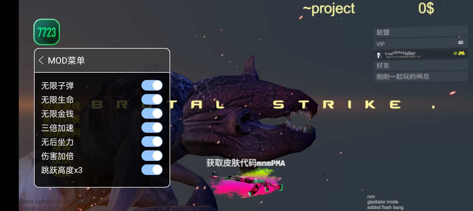 野蛮打击2024安卓最新版是一款由BrutalStrike发行的射击游戏,类似于经典的CS系列。该游戏内置了MOD菜单,允许玩家享受无限子弹和大量金币等特权,极大地提升了游戏的趣味性和自由度。玩家可以根据个人喜好和战术需求,自由选择和配置不同类型的武器和装备,包括步枪、冲锋枪和狙击枪等。如果你是射击游戏的爱好者,并且喜欢使用内置MOD菜单带来的便捷和乐趣,那么野蛮打击绝对不容错过。 游戏特色: 1、射击操作简单方便,采用FPS操作方式,让玩家更容易上手。 2、实时局势的把握对于取胜至关重要,玩家需要对战场上的情况有清晰的认知。 3、游戏内容精彩纷呈,受到了广大玩家的热爱,绝对是一种无与伦比的沉浸式体验。 4、战斗开始后,玩家需要对实时局势有清楚的认知,以取得更完美的胜利。 5、游戏拥有丰富多样的内容,深受玩家喜爱,绝对让人沉浸其中。 6、游戏中的武器配件种类繁多,玩家可以根据需要自由组合,以提升枪支的性能。 游戏亮点: 1、有趣的任务:每个关卡都有一个秘密任务和有趣的任务需要玩家认真完成,才能遇到敌人并攻击目标。 2、大逃杀模式:玩家可以体验穿越战场的行动与力量的终极结合,在Battle Royale中与其他玩家一同战斗。这是一个提高武器处理技巧和测试狙击手射击能力的机会。 3、无限射击冒险:玩家可以抓住步枪,在恐怖组织的致命战场上与强大的装甲车、直升机、无人机和油轮战斗。通过小地图的帮助警觉敌人,完成任务。随着关卡的推进,玩家可以始终尝试为自己装备新武器和装备,使用通过游戏中赚取的硬币购买。 4、实时击杀战场:体验FPS射击游戏的实时战斗。作为一个免费的在线射击游戏,你可以与世界各地的真正狙击手竞争。 5、多样化的武器和升级:通过存储战斗奖励和硬币来解锁所需的步枪。你还可以购买或升级新的战争武器,以增强你的战斗技能。 游戏玩法: 《野蛮打击》的玩法非常有趣。每个关卡都设有任务和战斗目标,玩家需要完成这些任务来提高自己的实力。在战斗中,玩家可以选择不同的武器和装备,根据实际情况进行战术配置。玩家需要灵活运用射击技巧和战斗策略,与敌人进行激烈的对抗。同时,玩家还可以利用游戏中的菜单MOD,拥有无限子弹和丰富的金钱资源,让战斗更加轻松和刺激。 游戏优势: 1、简单易上手:游戏的射击操作非常方便,采用FPS操作方式,让玩家更容易上手。 2、丰富多样的内容:游戏内置了丰富多样的武器和装备,玩家可以根据自己的喜好和战术需求进行配置,提升战斗能力。 3、刺激独特的游戏体验:游戏中的任务和战斗目标非常有趣,玩家需要完成这些任务来提高自己的实力,并与敌人进行激烈的对抗。同时,菜单MOD的存在也为玩家带来了更刺激和轻松的战斗体验。 4、多人对战乐趣:游戏支持多人在线对战,玩家可以与世界各地的真实玩家展开竞技,体验真正的射击战斗乐趣。 5、持续更新和改进:游戏开发团队会持续更新和改进游戏内容,为玩家带来更多新鲜的体验,使游戏始终保持活力和吸引力。 总之,如果你喜欢射击类游戏,并且喜欢有内置MOD菜单的游戏体验,不妨来试试《野蛮打击》吧!这款游戏不仅操作简单,内容丰富多样,还有刺激独特的游戏体验和多人在线对战乐趣。快来下载并加入战斗吧,成为战场上的王者! |