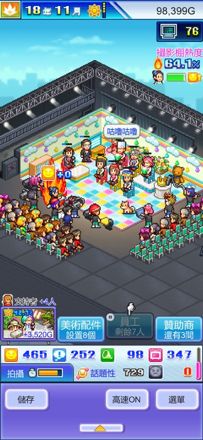 开拍电视制作物语是一款趣味无比的模拟电视制作游戏。玩家可以在游戏中体验到从节目构思到制作和播出的全过程。游戏旨在为玩家提供一个模拟真实电视制作流程的虚拟体验,让玩家在游戏中感受到经营电视台的充实和乐趣。同时,游戏还能够反映现实电视行业的运作模式和风貌,让玩家在游戏中获得一定的行业知识。 游戏特色: 1、真实感:游戏模拟真实的制作过程,玩家可以体验到电视制作的各个环节,包括节目构思、角色选择、资源管理等。游戏的真实感能够让玩家更好地理解电视制作的复杂性。 2、策略性:游戏具有一定的策略性和挑战性。玩家需要管理资源、制定预算、招募团队成员、安排节目录制和后期剪辑等各个环节。同时,玩家还需要面对一系列挑战,如演员罢工、预算超支等,从而考验玩家的应变能力和管理技能。 3、教育性:游戏不仅仅是一款娱乐产品,它还能够为玩家提供一些电视行业的基本知识。玩家可以学习市场调研、广告代理、合作伙伴关系等,从而更好地理解电视行业的运作。 4、多样性:游戏提供了多种不同类型的节目供玩家选择,如电视剧、综艺节目、新闻报道等。玩家可以根据观众受众群体和市场趋势选择合适的节目类型,以确保吸引观众,增加收视率和利润。 5、互动性:游戏为玩家提供了丰富的互动内容。玩家可以制定营销计划、拓展观众群体、推广节目,从而提高自己电视台的知名度和影响力。同时,玩家还可以与其他玩家进行交流和竞争,增加游戏的互动性和乐趣。 游戏亮点: 1、深入体验电视制作过程:玩家可以从最基础的节目构思开始,选择不同类型的节目,并进行导演、编剧和演员的选角。通过这一过程,玩家能够更深入地了解电视制作的各个环节。 2、挑战和应变能力:在进行节目制作的同时,玩家还需要面对一系列挑战,如演员罢工、预算超支等。玩家需要灵活应对,解决问题,展示自己的管理技能。 3、学习电视行业知识:游戏为玩家提供了一些电视行业的基本知识,如市场调研、广告代理、合作伙伴关系等。玩家可以通过游戏学习这些知识,更好地理解电视行业的运作。 4、营销和推广:玩家可以制定营销计划、拓展观众群体、推广节目,从而提高自己电视台的知名度和影响力。这不仅能够增加游戏的乐趣,还有助于玩家学习营销和推广的相关知识。 5、丰富的互动内容:游戏为玩家提供了丰富的互动内容,玩家可以与其他玩家进行交流和竞争,增加游戏的互动性和乐趣。玩家还可以参与各种比赛和活动,获得奖励和荣誉。 游戏玩法: 1、选择节目类型:玩家可以从电视剧、综艺节目、新闻报道等不同类型的节目中选择。 2、导演、编剧和演员选角:玩家需要根据选取的节目类型,选择适合的导演、编剧和演员来参与录制。 3、考虑观众受众群体和市场趋势:玩家需要考虑观众受众群体和市场趋势,以确保选取的节目类型能够吸引到观众,带来更高的收视率和利润。 4、资源管理和预算制定:玩家需要管理资源和制定预算,确保节目制作的顺利进行。 5、应对挑战和问题解决:玩家需要应对演员罢工、预算超支、制作设备故障等一系列挑战和问题,展示自己的应变能力和管理技能。 游戏优势: 1、学习电视行业知识:通过游戏,玩家可以学习电视行业的一些基本知识,如市场调研、广告代理、合作伙伴关系等。这将有助于玩家更好地理解电视制作的复杂性。 2、丰富的互动内容:游戏提供了丰富的互动内容,玩家可以与其他玩家进行交流和竞争,增加游戏的互动性和乐趣。 3、策略性和挑战性:游戏具有一定的策略性和挑战性,玩家需要管理资源、制定预算、招募团队成员、安排节目录制和后期剪辑等各个环节。同时,玩家还需要面对一系列挑战,展现自己的应变能力和管理技能。 4、营销和推广:游戏允许玩家制定营销计划、拓展观众群体、推广节目,从而提高自己电视台的知名度和影响力。这将有助于玩家学习营销和推广的相关知识。 5、娱乐和知识相结合:游戏不仅仅是一款娱乐产品,它还能够为玩家提供一些电视行业的基本知识。玩家可以在享受游戏乐趣的同时,获得关于电视制作行业的一些实用知识。 |