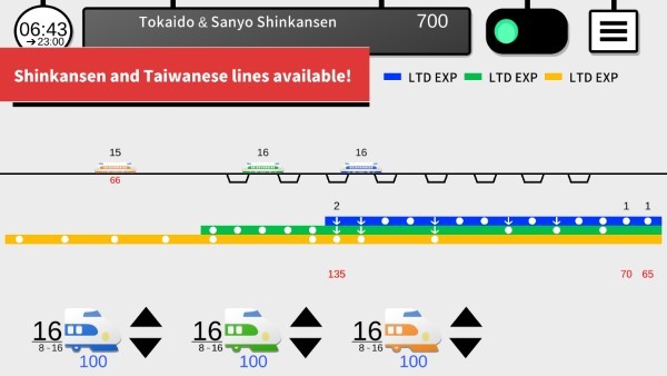 "你的火车2"是一款益智类的简单开火车的小游戏。在游戏中,玩家需要精确控制每辆火车的前进方向,以确保它们在不堵塞的情况下顺利通过。整体而言,这款游戏非常有趣,操作简单,但需要玩家巧妙调度每辆火车的时间。 游戏特色 收入 固定票价-登机前等待时间-登机到屏幕右端的时间=票价收入 任何车站的乘客都会收到固定票价,但票价会因火车到达车站所需的时间以及火车运行到屏幕右端所需的时间而减少。 游戏目标 让我们通过在车站候车的2265顾客那里收取车费来争取高营业利润吧! 这款游戏中的票价与现实及其前身都有些不同。 您收取的票价会随着时间的推移而减少。 营业利润是票价收入与出发成本之间的差额。 让我们快速为在车站等候的顾客提供火车服务,并将其快速运送到屏幕的右边缘。 成本 发车时,将根据车辆数量收取“发车费”。 示例:2节车厢列车30,3节车厢列车 35,4节车厢列车40 游戏玩法 -铁道游玩 jr北海道、jr东日本、jr东海、jr西日本、jr四国、jr九州 东武、西武、京急、京王、近铁、名铁、小田急、南海、京成、台铁、台湾高铁 北总铁道 伊豆急行 -货量充足 我们有超过50条火车线路供您选择! 另外,前作中没有的规则也会在游戏中途出现,敬请享受。 -与前作相比的变化 (非常感谢那些喜欢之前作品的人。) 与之前的游戏“你的火车”和“东京列车”相比,规则有一些变化,因此即使您喜欢之前的游戏,也请仔细检查游戏内的说明。 -本游戏的新功能 在信息中心,我们添加了“布局”功能,可让您根据您握持智能手机的方式更改按钮的布局。您可以选择三种类型:右手、左手以及游戏机的握持方式。 游戏亮点 在前作中,特急列车和子弹头列车的发车费用稍高,但在本作中,所有列车都相同。 在之前的游戏中,领取车费的时间是顾客上车的那一刻,但在这个游戏中,是顾客被带到屏幕右边缘的时候。 -容量约130mb “部分按钮的效果已改变。”新规则也即将到来。游戏中提供了说明。 一场游戏时间不到3分钟,让你轻松享受。 存储负担也小。完全没有重加工,所以对于比较老的车型来说是没有问题的。 综上所述,《你的火车2》是一款简单而有趣的火车模拟益智游戏。玩家需要在不互相堵塞的情况下,巧妙调度每辆火车的时间,以获取高的营业利润。游戏提供了多样化的玩法和丰富的火车线路选择,同时具有较小的存储空间和短时间游戏的特点。 |