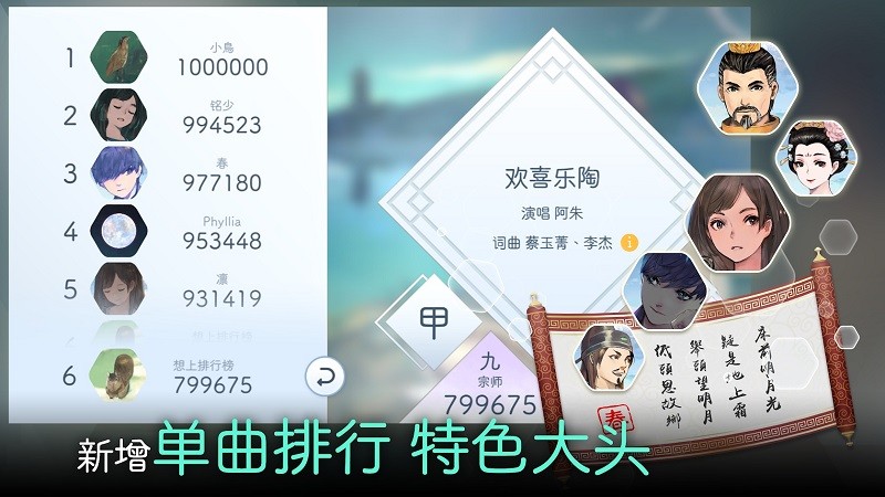 阳春白雪官网版这是一款唯美动听的音乐手游,将中国古诗词与音乐完美结合在一起。游戏名字“阳春白雪”暗示了这款游戏能够撑得起音乐节这样的至高赞赏,因此在业界被评为最具意义的游戏,并赢得了相应的奖项。游戏采用了唯美的日韩动漫画风和中国元素的结合,在视觉和听觉上为玩家营造了一个唯美绝妙的世界,绝对是史诗级别的视听盛宴。 游戏特色: 1、由台湾游戏团队与汉光创艺文化合作打造的音乐游戏。这款游戏首创以歌词为主的音乐游戏,让玩家在唯美的古风音乐中感受到音乐创作背后真实的情感。 2、每首歌曲都有意义深远的故事。玩家可以穿越时空,与古代和历史上的那些天才进行一次心灵的对话。音乐成为纽带,让玩家感受名人的喜怒哀乐。 3、游戏拥有唯美清新的动漫画风,完美地将现代与古代融合在一起。游戏玩法简单,将中国古诗词融入音乐游戏中,玩家可跟随音乐节奏完成诗篇,探索背后隐藏的故事。 游戏玩法: 1、打开游戏,点击屏幕开始游戏。 2、在游戏界面中点击选曲,选择您想要玩的音乐。 3、您还可以选择不同的难度,如普通、困难、宗师等。 4、进入游戏后,会有游戏玩法教程。例如,在提示圈与音符重叠时,点击音符;拖拽音符沿着路径方向拖动;滑动音符沿着箭头提示的方向快速滑动;长按持续压住音符直到环状提示结束;双击同时点击两个音符。 游戏优势: 1、游戏画面绚丽绝美,音乐动听感人。玩家会在游戏中享受到视听的双重盛宴。 2、游戏故事背后有深刻的意义,玩家能够与名人进行一场心灵的互动。 3、游戏的画风独特,以日韩动漫画风和中国元素为主题,给玩家带来全新的视觉体验。 4、游戏玩法简单易懂,非常容易上手,但并不无聊。玩家可以通过完成诗篇来探寻故事的背后。 5、游戏中融入了中国古诗词,让玩家在享受音乐的同时,也能领略到中国文化的魅力。 总之,阳春白雪手游是一款兼具唯美音乐和古风画风的游戏,不仅将中国古诗词与音乐完美结合,也给玩家带来了视觉和听觉的双重享受。玩家可以在游戏中感受到音乐背后的真实情感,并通过完成诗篇来探索故事的深意。无论是画面还是音乐,都堪称视听盛宴。不容错过! |