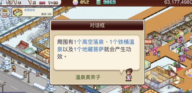 暖暖温泉乡2中文最新版是开罗游戏旗下一款日系温泉题材像素风模拟经营游戏。玩家扮演投资者,经营自己的温泉旅馆,致力于满足顾客需求,解锁新的建筑物和设施设备,修缮室内温泉以及露天温泉,打造与众不同的温泉店。通过开展丰富多样的活动来吸引更多的顾客,从而赚取更多的金币和声望。 游戏特色: 1、独特的像素风格:游戏采用像素风格的画面,展现出别具一格的温泉场景和建筑物,带给玩家一种别样的视觉享受。 2、多样化的温泉布局:在游戏中可以根据自己的喜好来布置温泉,例如添加花瓣、盐、幸运等元素,定制出独一无二的温泉功效。 3、丰富多样的角色和任务:游戏中有多种不同的发型、服装和饰品供玩家选择,同时还有各种任务等待完成,提供了丰富多样的游戏内容。 4、互动性强的社交系统:玩家可以邀请好友来参观自己的温泉旅馆,也可以与其他玩家进行互动交流,共同探索游戏的乐趣。 5、多重经营策略:游戏中除了经营温泉旅馆外,还可以通过购买、扩建等方式来提升自己的经营水平,实现更高的收益和声望。 游戏亮点: 1、真实还原温泉体验:游戏通过精美的画面和细致的设计,让玩家感受到真实的温泉体验,仿佛身临其境。 2、创新的建筑布局:玩家可以根据个人喜好和需求灵活布置建筑物和设施,打造独一无二的温泉场所。 3、有趣的任务和活动:游戏中的任务和活动丰富多样,涵盖了不同的小游戏和挑战,玩家可以通过完成这些任务来获取奖励和成就感。 4、丰富的社交互动:游戏中的社交系统充满了乐趣,玩家可以与好友一起经营温泉旅馆,还可以与其他玩家交流心得、分享经验。 游戏玩法: 1、经营温泉旅馆:玩家需要根据顾客的需求布置温泉设施、提供舒适的客房,并提供各种服务来满足顾客的需求。 2、解锁新的建筑物和设施:玩家可以通过完成任务和活动来解锁新的建筑物和设施,扩大温泉旅馆的规模和吸引更多的游客。 3、参与各种活动:游戏中有丰富多样的活动,如举办派对、比赛等,玩家可以通过参与活动来吸引更多的顾客和增加收益。 4、提升温泉功效:玩家可以通过添加花瓣、盐等元素来提升温泉的功效,吸引更多的顾客来体验。 5、进行社交互动:玩家可以邀请好友一起经营温泉旅馆,也可以与其他玩家交流心得和经验,共同探索游戏的乐趣。 游戏优势: 1、精美的像素画面:游戏采用像素风格的画面,给人一种别样的视觉享受,让玩家沉浸在温泉的世界中。 2、多样化的游戏内容:游戏中有丰富多样的任务、活动和建筑物可供玩家选择和体验,保持了游戏的新鲜感和乐趣。 3、强大的社交互动系统:玩家可以与好友一起经营温泉旅馆,也可以与其他玩家交流心得和经验,增加了游戏的互动性和乐趣度。 4、持续更新的游戏内容:开罗游戏团队会不断推出新的建筑、功能和活动内容,保持游戏的更新和玩乐乐趣。 5、单机和联机双模式:游戏支持单机和联机模式,玩家可以选择适合自己的方式来体验游戏,增加了游戏的可玩性和挑战性。 温泉功效布局: 1、花瓣 2、盐 3、幸运 4、哼歌 5、按摩 6、友谊 7、地狱 布局攻略: 1、那个红色的不是大门(这张图没有大门的位置) 而是 那个受付柜台的位置 而那个植物放在柜台的边上 既不会挡住去路还合理的利用了空间。 2、服装、饰品、饰品特殊都有不同的要求发型:鸽吟棕占星少女棕鸽吟蓝维多利亚魅惑佳人奇迹。连衣裙:清雅兰香。外套:初绽铃兰。袜套:轻絮蝶雾青环月涟漪曦光脚步。 3、温泉物语/暖暖温泉乡客层;温泉物语/暖暖温泉乡客层人气攻略;快来跟小编一起看看吧!在温泉物语中,关于客层:同一时间内,可以向三个客层宣传你的旅馆,也就是吸引这些人群来到你的旅馆。 4、刷完钱后要重新布局,树越多越好,且客房不用太多,他玩时最多也才53人,有人说树种在四周好,其实也不是,树一定要与建筑粘在一起才能发挥它的最大作用。 游戏测评: 暖暖温泉乡2拥有丰富多样的内容和特色,带给玩家别具一格的温泉体验和经营乐趣。无论是独自一人还是与好友一起,都能享受到游戏带来的乐趣和挑战。快来开设自己的温泉旅馆,打造独一无二的温泉店,与其他玩家一起探索游戏的精彩吧! |