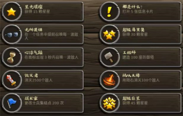 王国保卫战前线无限钻石最新版是一款经典塔防策略手游,由IronhideGameStudio制作。游戏拥有超多的关卡和各种类型的战斗成就,玩家可以在游戏中体验到丰富多样的闯关玩法。这款游戏获得了《想象游戏网络》编辑推荐游戏、SlideToPlay必玩游戏、JayisGames年度游戏等多个荣誉,证明了它在塔防策略游戏领域的卓越表现。 版本说明: 温馨提示:本游戏可体验完整内容;大量钻石,进入游戏选择第一个存档;没有谷歌验证 游戏特色: 1、极致的策略对战玩法:王国保卫战前线给玩家带来了极具策略性的战斗体验,玩家需要合理布局防御塔,利用它们的特殊技能和升级系统来对抗不断涌来的敌人。 2、丰富多样的关卡:游戏中拥有众多精心设计的关卡,每个关卡都带来全新的挑战和策略需求。玩家需要根据不同的敌人和地形特点来制定战略,保护自己的王国。 3、多样化的战斗成就:玩家在游戏中可以通过完成各种战斗成就来获得荣誉和奖励。这些成就包括击败强大的BOSS敌人、提早召唤敌人浪、使用特殊技能等,挑战玩家的策略和操作技巧。 4、华丽精美的画面效果:王国保卫战前线拥有精美细致的游戏画面和华丽动画效果。玩家可以在游戏中欣赏到精美的场景和华丽的战斗特效,增强游戏的视觉体验。 5、丰富多样的英雄和塔防类型:游戏中提供了多种不同类型的英雄和防御塔供玩家选择。每个英雄和塔防都有独特的技能和特点,玩家可以根据自己的喜好和战略需求来选择和升级。 游戏亮点: 1、精心设计的关卡和挑战:王国保卫战前线拥有众多精心设计的关卡,每个关卡都给玩家带来全新的挑战和策略需求。玩家需要在不同的地形和敌人威胁下制定战略,保护王国。 2、丰富多样的战斗成就:游戏中提供了多种战斗成就供玩家挑战。击败强大的BOSS敌人、提早召唤敌人浪、使用特殊技能等,挑战玩家的策略和操作技巧,获得荣誉和奖励。 3、华丽细腻的画面效果:游戏拥有精美细致的游戏画面和华丽动画效果。玩家可以欣赏到精美的场景和华丽的战斗特效,增强游戏的视觉体验。 4、丰富多样的英雄和塔防类型:游戏中提供了多种不同类型的英雄和防御塔供玩家选择。每个英雄和塔防都有独特的技能和特点,玩家可以根据自己的喜好和战略需求来选择和升级。 5、策略对战玩法的极致体验:王国保卫战前线给玩家带来了极具策略性的战斗体验,玩家需要合理布局防御塔,利用它们的特殊技能和升级系统来对抗不断涌来的敌人,考验玩家的策略思维和操作技巧。 游戏玩法: 1、关卡闯关:玩家需要在不同的关卡中布局和升级防御塔,通过击败敌人与BOSS来保护王国。 2、策略布局:玩家需要合理考虑塔防的布局和类型选择,根据不同的敌人特点和地形来制定最佳的防御策略。 3、英雄系统:玩家可以选择并升级不同的英雄角色,利用他们的特殊技能来增强战斗力。 4、战斗成就:游戏中提供了丰富多样的战斗成就供玩家挑战,完成成就可以获得荣誉和奖励。 5、升级系统:玩家可以通过收集金币和完成任务来升级防御塔和英雄,提升其战斗能力和技能效果。 游戏优势: 1、精心设计的关卡和挑战让游戏更具耐玩性,玩家可以不断尝试不同的策略和布局来挑战自己。 2、华丽细腻的画面和动画效果提升了游戏的视觉体验,给玩家带来更多的乐趣。 3、丰富多样的英雄和塔防类型提供了选择和决策的乐趣,玩家可以根据自己的喜好和策略需求来选择和升级。 4、策略对战玩法的极致体验让玩家体验到了塔防游戏的精髓,考验玩家的策略思维和操作技巧。 5、丰富多样的战斗成就和荣誉系统激发了玩家的挑战欲望,完成成就可以获得更多的奖励和荣誉,增加了游戏的可玩性。 成就攻略: 1、第一滴血:杀死一个敌人 2、拉开序幕:完成第一关 3、地主:在任意一关的所有塔位上放置防御塔 4、一身是胆:提早召唤10波敌人。 5、神灯精灵:击败第6关纳泽鲁之门BOSS火巨灵纳泽鲁 6、英雄重生:升级任意英雄。 7、建造者:建造30座塔。 8、嗜斗狂徒:杀死500个敌人 9、末日决战:在一个关卡内使用5次火雨 10、居家装修:将所有基本塔型升级到3级 11、星光璀璨:获得15颗星 12、那是什么:打开5张敌方信息卡。 13、大胆无畏:在一个关卡中?提早召唤所有的波 14、超级马里奥:获得30颗星。 15、心浮气躁:在图标出现3秒内召唤一波敌人 16、工程师:建造100座塔楼 17、毁灭者:击杀2500名敌人 18、祸从天降:用流星雨杀死100个敌人 19、战术家:改变士兵集结点200次 20、超级巨星:获得45颗星 |
