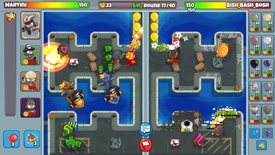 气球塔防对战2最新版是一款由Ninja Kiwi出品的休闲塔防游戏,以塔防对战玩法为主要特色。玩家需要在不同的场景中放置不同技能的猴子塔防,阻止气球达到终点。 游戏特色: 1、多样化的塔防选择:游戏中有各种不同类型的塔防可以选择,每个塔防都有独特的攻击方式和特殊能力,玩家可以根据自己的策略选择适合的塔防组合。 2、塔防升级系统:玩家可以通过消耗游戏内货币来升级已建立的塔防,提升它们的攻击力、射程和特殊能力,增强防御能力。 3、多人在线对战模式:游戏支持多人在线对战,玩家可以与其他玩家组队或对抗,争夺最高分数。在对战中,玩家可以通过派遣更多的敌人来攻击对手,或者使用特殊能力来削弱对手的防御。 4、丰富多样的地图和任务:游戏中提供了多个地图和任务供玩家挑战,完成任务可以解锁新的地图、塔和特殊能力,增加更多的策略选择和挑战。 5、简单易上手的操作:游戏操作简单,只需要将各种塔防图片拖到相应的位置去抵抗气球大军就行,适合休闲玩家。 游戏亮点: 1、独特的塔防对战玩法,带来刺激的竞技体验。 2、丰富多样的塔防选择,可自由组合策略。 3、多人在线对战模式,与其他玩家一较高下。 4、精心设计的地图和任务,丰富游戏内容。 5、简单易上手的操作,适合各种玩家。 游戏玩法: 1、建立防御塔:在游戏地图上建立不同类型的防御塔,保护终点不被气球抵达。每种塔都有不同的攻击方式和特殊能力,玩家可以根据自己的策略选择不同的塔来组成防御体系。 2、升级塔防:玩家可以通过消耗游戏内货币来升级已建立的防御塔,提升它们的攻击力、射程和特殊能力,增强防御能力。 3、收集资源:通过击败敌人来获得游戏内货币和其他资源,用来建立新的防御塔、升级塔或使用特殊能力。 4、多人对战:与其他玩家进行多人在线对战,通过派遣更多的敌人干扰对手,或使用特殊能力削弱对手的防御。 5、解锁新内容:完成游戏中的任务和挑战,解锁新的地图、塔和特殊能力,拓展游戏的策略选择和挑战。 游戏优势: 1、丰富多样的塔防选择,玩家可以根据自己的喜好和策略进行塔防组合。 2、多人在线对战模式,与其他玩家一起竞技,增加游戏的互动性和竞争性。 3、精心设计的地图和任务,提供丰富的游戏内容和挑战。 4、简单易上手的操作,适合休闲玩家,让玩家更轻松地享受游戏乐趣。 怎么打伪装气球: 1、对面出蓝气球,第一回合比红气球出的慢,一般对面是要攒钱憋一个塔,憋的是机枪,我们不用管他,正常出图钉 2、出来的图钉先点一个1,因为我怕对面出绿气球和黄气球(这个图不怕,但是我不卡钱,可以持续发红气球所以直接点了), 绿气球没有地形优势这样的图钉顶不住,点了之后点2路,到3回合发升级之后的蓝气球,升级之后的蓝气球发的变快,持续增长eco 3、点出3级之后就不怕黄气球了,点到这个级别赶紧把1路点到2级,不然会漏粉气球,点完之后很长一段时间就是自由时间了,对面只会出刚出来的气球,一直在攒钱,可能在憋农,管不了,我们用在3,4回合出的最快的蓝气球刷eco 4、5回合刷升级之后的绿气球,5回合绿气球最快,刷到黑气球出来为止,如果对面不加强防御你可以出白气球试试对面的战力,对面战力不够白气球会让对面掉血 5、黑气球出来了,我们刷黑气球,赞点钱把防御升级一下,因为几个回合之后会出斑马,一个图钉受不住,当然你可以晚一点出,再用绿气球刷一会eco,这个图,图钉的地形好能顶到斑马出来,而且斑马气球升级之后我们的战斗力守不住,我这里选择炮击跑来补防御,迫击炮下路能破迷彩 6、点下路和中路,上路我个人感觉不是很厉害,先点到022到迷彩出来再点下路023来防迷彩 更新日志: v3.2.2版本 现在是时候用两张令人难以置信的新地图来迎接新的一年了!首先,我们有三文鱼阶梯,在那里你必须在它们爬上河之前去除布隆。或者,您可以在第一个独家氏族战争地图上进入自己的领土上进行战争:岛基地。此外,我们呈现一个全新的闪光季节,充满了令人难以置信的装饰物品供您发现。 v3.1.2版本 赞美太阳神!高级女祭司阿多拉已经抵达第二次战役!用她毁灭性的神圣攻击照亮你毫无戒心的对手,并在你自己的猴子中找到值得牺牲的东西来快速追踪她的水平。将她与超级猴子配对,以获得真正幸运的协同效果。为什么不在全新的地图太阳宫上试用她,并用最新闪亮季节的新化妆品为她定制呢!此更新包含错误修复。有关详细信息,请参阅补丁说明。 |