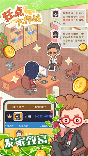 狂点大作战内置菜单最新版是一款内置菜单的放置经营游戏,通过指尖的点击,玩家将经营自己的公司并参与各种事务中。游戏提供了丰富的设施等待着玩家的建造,并且可以购置更多的土地,不断扩建自己的商业帝国,赚取丰厚的收益,目标是成为最佳的经营大亨。 游戏特色: 1、简单容易上手的放置玩法:玩家只需要进行简单的指尖点击,就能轻松上手游戏,完成各种考验。 2、策略性经营:随着经营的不断进行,更多的对手将前来竞争,玩家需要使用最合理的策略,拍下最佳的地段,提升整体收入。 3、挂机系统:游戏提供了放置的挂机系统,即使离线时也能获得大量奖励,解放玩家的双手,赚取更多的收益。 游戏亮点: 1、可爱的卡通画面风格:游戏采用了可爱的卡通画面风格,各个场景精彩纷呈,视觉效果极佳,让玩家沉浸其中。 2、丰富的装饰物类型:游戏提供了多种多样的装饰物供玩家选择搭配,打造独一无二的外观,打造自己的主题公司。 3、多样化的员工角色:游戏中有各种不同风格的员工角色,每种角色都拥有不同的能力和属性,玩家需要将他们放置在适合的岗位上,发挥最佳的能力。 游戏玩法: 1、建造设施:玩家可以建造各种设施,如办公楼、餐厅、商店等,每个设施都能为玩家带来收益。 2、扩张土地:玩家可以购置更多的土地,以扩展自己的商业帝国,并在新的土地上建造更多的设施。 3、挑战对手:随着游戏的进行,更多的对手将前来竞争,玩家需要使用策略性地拍下最佳的地段,以获得更高的收益。 4、赚取收益:玩家通过经营各种设施和土地,可以赚取丰富的收益,用于购买更多的设施和土地,进一步发展自己的商业帝国。 5、解锁新内容:随着游戏的进行,玩家将解锁更多的设施类型和员工角色,为游戏增添更多的乐趣。 游戏优势: 1、简单易上手:游戏的操作方式非常简单,随时随地都能够加入其中,轻松上手。 2、有趣的经营玩法:游戏提供了精彩有趣的经营玩法,每个阶段都有新的玩法乐趣,让玩家的资产瞬间翻倍。 3、多样化的游戏内容:游戏中提供了丰富的装饰物类型和员工角色,让玩家可以根据自己的喜好进行选择,打造独一无二的公司。 4、拥有挂机系统:游戏的挂机系统让玩家即使离线时也能获得大量奖励,方便玩家轻松赚取更多的收益。 5、具有极佳的视觉效果:游戏采用可爱的卡通画面风格,各种场景精彩纷呈,为玩家带来沉浸式的视觉体验。 |