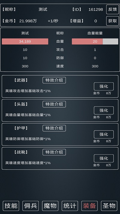 【游戏简介】 《魔物侵袭3》是一款创意十足的文字挂机游戏。游戏以文字为主要元素,让玩家使用圣物和金币与魔物进行战斗,同时还可以通过学习技能来强化装备。游戏的目标是不断刷魔物获取圣物和金币,每种魔物都有不同的效果,而金币可以用来招募佣兵、学习技能或强化装备。最终的目标是击败魔龙。游戏内不需要花费氪金,只有少量广告。 【游戏特色】 1、系统数据实时保存:玩家可以放心玩游戏,不用担心数据丢失的问题。 2、个性化玩法:每个玩家都可以在游戏中找到属于自己的专属玩法,玩法不统一。 3、金币的重要性:金币是游戏中最重要的资源,玩家可以用金币招募士兵,提升自己的战斗能力。 4、全新圣物和技能系统:游戏中有各种各样的圣物和技能,玩家可以通过学习技能和强化装备来提升自己的实力。 5、刺激的挑战:玩家可以挑战一个又一个的魔物,并最终打败魔龙,体验到刺激的战斗快感。 【游戏亮点】 1、全屏放置竞技战斗:玩家可以一起参与放置PK较量,体验爽快的挑战。 2、多种魔物对决模式:游戏包含了不同的魔物对决模式,让玩家有更多的冲击体验。 3、塔防较量:玩家可以参与各种各样的塔防较量,在层层关卡中挑战战斗。 4、游戏评测:虽然道路上充满了陷阱,但只要玩家努力尝试,总能找到逃脱的方法。 5、轻松升级:玩家可以轻松升级,解锁更多内容,让游戏更具挑战性和乐趣。 【游戏玩法】 1、刷魔物获取资源:玩家可以不断刷魔物来获取圣物和金币,提升自己的实力。 2、招募士兵:使用金币来招募士兵,增加自己的战斗能力。 3、学习技能:玩家可以学习各种技能,强化自己的装备和实力。 4、挑战魔物:玩家可以挑战各种各样的魔物,一步步解锁更高级的挑战。 5、击败魔龙:最终目标是击败魔龙,成为最强的战士。 【游戏优势】 1、实时保存数据:系统数据实时保存,玩家不用担心数据丢失,畅快玩游戏。 2、个性化玩法:每个玩家都可以根据自己的喜好选择不同的玩法,享受不同的游戏乐趣。 3、丰富多样的内容:游戏中有各种各样的圣物、技能和魔物,让玩家有更多的选择和挑战。 4、刺激的战斗体验:通过不断挑战魔物和强化装备,玩家可以体验到刺激的战斗快感。 5、无需氪金:游戏内无需氪金,只有少量广告,让玩家能够畅快游戏,无后顾之忧。 以上是对《魔物侵袭3》最新版本的介绍,这是一款富有创意和挑战性的文字挂机游戏,让玩家通过刷怪、招募士兵、学习技能等方式不断提升自己的实力,最终击败强大的魔龙。快来下载游戏,体验不同凡响的文字游戏乐趣吧! |