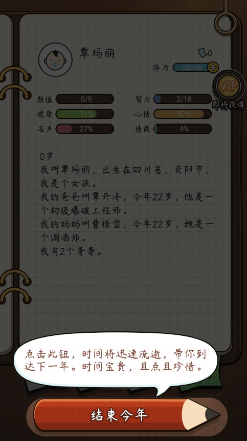 游戏简介: 《奇迹人生》是一款让玩家在游戏中体验全新成长的手机游戏,从一个小婴儿到老去你将在游戏中重新获得生命,所有的一切都掌握在你的选择中。玩家可以尝试过不同的一生,感受人生的起伏和酸甜苦辣。 游戏特色: 1、选择兴趣:在游戏中,玩家可以选择自己喜欢的事业和兴趣,体验到更多多彩的内容。 2、游戏选项:游戏进行时可能会出现多种不同的选项,玩家可以根据自己的喜好去选择,探索游戏的各种可能性。 3、方法体验:游戏方法老少皆宜,各种有趣的游戏都很容易体验到,所以不管是年轻人还是老年人都可以轻松玩耍。 游戏亮点: 1、丰富的人生体验:游戏以一个真实的人生经历为蓝本,玩家可以在游戏中经历人生的各个阶段,体验儿时的小回忆、青春期的叛逆、工作打拼的奋斗等等。 2、互动的人物角色:游戏中的人物角色不仅是虚拟的存在,而是活生生的人,会主动和玩家互动,对游戏结果产生影响。 3、平衡贴合真实生活的职业设计:游戏中的职业设计更加平衡,每份不同的工作都有不同的事件和结局。后续版本中,还将有开公司创业的玩法,让玩家从小家庭到家族企业的打拼中实现富裕。 4、人生选择的影响:每个决定都会影响玩家的生活,每个人的选择都不同,因此每个玩家都会有不同的结果。 5、自由的成长:玩家可以以自己喜欢的方式收获乐趣,解开各种生活冒险故事,尝试不同的人生路径,获得多样的资源和属性,找到自己的生活方向。 游戏玩法: 1、玩家通过不断学习和成长,经历人生的各个阶段,面对各种挑战和考验,最终成为一个有理想、有品质、有贡献的成年人。 2、玩家对于游戏中的选项进行选择,探索不同的人生选择和可能性。 3、玩家可以选择自己喜欢的事业和兴趣,体验不同的人生内容。 4、玩家可以与游戏中的人物角色进行互动,影响游戏结果。 5、玩家可以通过自己的努力实现富裕,将小家庭发展成为家族企业。 游戏优势: 1、无限种人生路径,打造属于自己独特的人生经历。 2、在不同的时间段中做出决策,为人生的道路定下基调。 3、随意选择不同的人物形象和属性,进入游戏世界,不断尝试,积累经验,打造自己独特的人生。 4、全新的游戏玩法,真实身临其境的体验。 5、在不同的选择面前,选择最适合自己的道路。 |