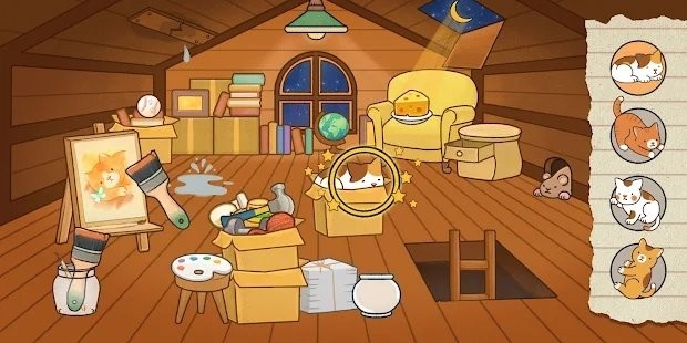 喵侦探咪雅游戏是一款主打益智休闲趣味玩法的手机游戏。趣味的挑战加上各种奇妙的找茬关卡,让你更好的感受到猫咪的乐趣,丰富的内容给你带来独特的体验,你还在等什么呢,心动不如行动,赶快来下载试试吧! 游戏介绍: 是否有丢失的猫咪?是否有身处险境的动物?是否有想找回的回忆?请委托给喵侦探咪雅~!这可不是单纯的图画捉迷藏游戏!就能完成一幅插图! 游戏特色: 1、请解开各种脑筋急转弯的题目和谜团,救出动物! 2、请点击,滑动,拖动屏幕找出隐藏的道具! 3、有时,可能还需要把手机完全翻过来哦! 4、阁楼,庭院,美术馆,购物广场,实验室…甚至宇宙? 5、请听委托人的故事,找出隐藏的动物。 游戏优势: 1、游戏在离线的状态下也可以畅玩,没有网络限制,让玩家可以随时随地感受游戏的乐趣。 2、根据所接受到的委托任务,在不同的场景中找到丢失的小猫咪,这非常考验玩家的观察力。 3、在玩游戏的时候,玩家可以开动自己的脑筋解决所有的谜题。 4、游戏的场景非常的丰富,我们可以在不同的场景中进行解密,非常锻炼玩家的眼力。 玩法亮点: 1、那些动物可能会以超乎想象的方式,隐藏在你意想不到的地方哦! 2、请欣赏动漫风格的插图!请闯关来获得各种家具和玩具 3、游戏离线也能玩!布置只属于自己的侦探事务所! 4、找到所有的道具,请跟朋友们一起开动脑筋,解开谜题! 游戏说明: 1、画面背景制作的非常的简单,而且在这游戏中给玩家带来一种不一样的解谜挑战。 2、在进行关卡挑战的时候,玩家需要让剧情不断的推进才可以完成任务。 3、用非常短的时间来解决这些谜题,而且非常的容易上手操作简单方便。 喵侦探咪雅怎么玩? 1、在本站下载游戏,进入游戏页面,玩家需要根据委托在不同的场景里找到对应的物品和猫咪。 2、接下来玩家点击开始即可正式进入游戏。 3、右侧是玩家需要找到的猫咪和物品,点击即可查看提示。 4、玩家根据提示即可快速正确地找到相对应的猫咪和物品。 5、右侧是玩家需要找到的猫咪和物品,玩家需要将全部猫咪和物品找齐才可以通关。 6、在寻找猫咪的过程中需要使用一定的道具名玩家需要细心寻找。 7、游戏场景中每一个地方都有可能隐藏着重要线索哦。 8、找到道具可以更容易的找到猫咪哦。 9、玩家成功找到所有猫咪和物品就可以通关成功啦,还可以获得丰厚的报酬。 10、玩家还可以根据自己的喜好布置自己的侦探社哦。 11、玩家还可以完成每日任务,查看自己的成就哦。 第二关攻略: 1、进入关卡,点击如图所示两处找到地球仪和球 2、用画刷来刷滑板找到一只小猫咪 3、用锤子将房顶上钉好的木板弄开,然后用罐子来接水,水满之后会出现一只猫咪 4、将房顶打开,月光照射到沙发上出现奶酪,将奶酪放在老鼠洞口会吸引一只猫咪前来 5、将梯子往上移也会出现一只小猫咪 6、上下晃动手机,最后一只小猫咪就会出现在纸箱子里了 |