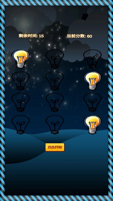 游戏简介: 《天黑请关灯游戏》是一款挑战性十足的点击玩法游戏。在游戏中,玩家需要在规定的时间内将屏幕上不断闪烁的灯泡逐一熄灭。游戏的界面以暗黑的星空为背景,布满了密密麻麻的灯泡,给玩家一种紧张刺激的氛围。点击玩法简单明了,操作轻松。这款游戏考验玩家的观察力和反应速度,非常具有挑战性。 游戏特色: 1、简单又着迷的休闲类游戏:《天黑请关灯游戏》适合所有年龄段的人群,无论是老人、中年人还是小孩,都可以轻松上手,全家人都可以一起享受游戏的乐趣。 2、玩法特别简单:只需点击屏幕上的灯泡,即可将其熄灭。操作简单易懂,简单的游戏规则吸引了大量的玩家。 3、增强脑力:熄灭所有的灯泡后可以进入下一关卡,这样的训练可以提高玩家的观察力和反应速度,对大脑的锻炼效果显著。 4、多样化的灯泡效果:不同的灯泡会有不同的效果,玩家可以尝试各种不同的策略,增加游戏的趣味性和挑战性。 5、简约的界面设计:游戏以暗黑的星空为背景,简约而不失美感,给玩家带来一种独特的游戏体验。 游戏亮点: 1、考验观察力和反应速度:《天黑请关灯游戏》的核心玩法是在规定时间内将屏幕上的灯泡熄灭,这要求玩家具备敏锐的观察力和快速的反应能力。 2、增加游戏的难度和挑战性:随着游戏的进行,灯泡的闪烁速度将会越来越快,让玩家面临更大的压力和挑战。 3、多样化的关卡设计:游戏设有多个关卡,每个关卡都有不同的难度和挑战,让玩家在游戏中保持持久的兴趣和激情。 4、多种灯泡效果的运用:不同的灯泡会带来不同的效果,玩家需要巧妙运用这些效果,找到最佳的游戏策略。 5、全家共享的休闲娱乐:《天黑请关灯游戏》适合全家一起玩,不仅能增进亲子关系,还可以锻炼家庭成员的观察力和反应能力。 游戏玩法: 1、玩家需要在规定的时间内点击屏幕上闪烁的灯泡,将其一一熄灭。 2、不断熄灭灯泡,进入下一关卡。 3、随着游戏的进行,灯泡的闪烁速度将逐渐加快,增加了游戏的难度。 4、玩家可以根据灯泡的效果,制定最佳的游戏策略,提高熄灭的效率。 5、游戏中还设有多个关卡和成就,给玩家更多的挑战和目标。 游戏优势: 1、考验观察力和反应速度,训练大脑:《天黑请关灯游戏》是一款能够锻炼玩家观察力和反应速度的游戏,对大脑的训练效果显著。 2、简单易上手的操作方式:游戏的操作非常简单,只需要点击屏幕上的灯泡即可进行游戏,适合所有年龄段的人群。 3、休闲娱乐全家共享:《天黑请关灯游戏》适合全家一起玩,不仅可以增进亲子关系,还可以锻炼家庭成员的观察力和反应能力。 4、多样化的游戏特色:游戏中设有多种不同的灯泡效果,玩家可以尝试不同的策略,增加了游戏的趣味性和挑战性。 5、多个关卡和成就可供挑战:游戏中设有多个关卡和成就,玩家可以不断挑战自我,追求更高的成绩和目标。 |