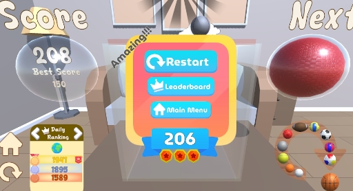 游戏简介: 合并球球3D挑战官方版是一款基于球球3D挑战游戏的休闲益智游戏。该游戏通过合并相同的球来获得更高分数,并挑战不同难度级别的关卡。游戏操作简单,但难度逐渐增加,让玩家提高反应和思考能力。 游戏特色: 1、创新玩法:玩家通过拖拽屏幕合并不同颜色的球,使它们升级到更高级别的球。 2、简单规则:玩家通过合并同色球获得更高积分,当屏幕上的球满了游戏结束并显示分数。 3、合并升级:玩家可以将同色小球合并成更高级别的球,例如将两个红球合并成一个橙球。 4、边界限制:玩家需要注意游戏界面中的边界线,如果合并创建的球超出界限,游戏结束。 5、多难度等级:游戏有5个不同难度等级,初级、中级、高级、困难和专家,供玩家选择解锁。 游戏亮点: 1、挑战性玩法:玩家必须将球拖放到相同颜色的球上才能合并,每次闯关需要达到特定的分数才能解锁下一个关卡。 2、3D立体视觉效果:游戏基于3D立体视觉效果开发,给玩家带来极佳的视觉体验。 3、详细的游戏提示:游戏一开始就提供详细的游戏提示,使新手玩家轻松上手。 4、多样化关卡:每个难度等级都由不同的关卡组成,玩家需要获得一定的分数才能解锁下一个关卡。 5、丰富的操作技能:游戏难度逐渐增加,玩家可以逐渐提高操作技能和观察力。 游戏玩法: 1、合并相同的球:玩家通过拖拽屏幕将相同颜色的球合并,使它们升级到更高级别的球。 2、注意边界线:玩家需要时刻注意游戏界面中的边界线,如果合并创建的球超出界限,游戏结束。 3、游戏提示:每关之前会显示一些游戏提示,指导玩家如何操作、如何获得更高分数以及每个球的得分。 4、解锁新关卡:顺利通过第一关后,玩家可以选择解锁新的关卡。游戏有5个不同难度等级供选择。 5、挑战不同难度级别:游戏难度分为初级、中级、高级、困难和专家,玩家可以根据自己的能力和兴趣进行选择。 游戏优势: 1、提升反应和思考能力:游戏的难度逐渐增加,让玩家逐渐提高自己的操作技能和观察力。 2、多样化的难度等级:游戏有多个难度等级可供选择,符合不同玩家的能力和兴趣。 3、丰富的关卡内容:每个难度等级都由不同的关卡组成,玩家需要获得一定的分数才能解锁下一个关卡。 4、3D立体视觉效果:游戏基于3D立体视觉效果开发,提供极佳的视觉体验。 5、详细的游戏提示:游戏一开始就提供详细的游戏提示,使新手玩家轻松上手。 |