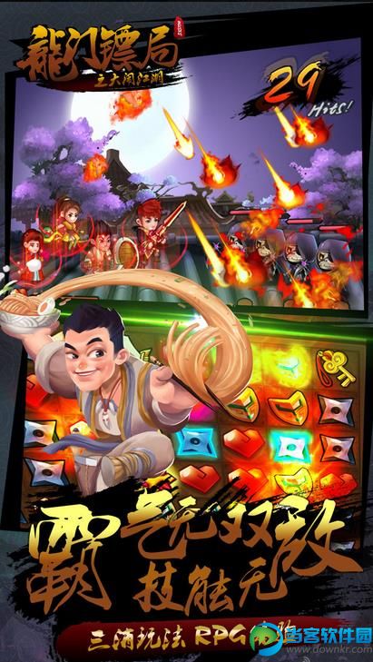 龙门镖局之大闹江湖安卓版是一款融合了RPG与三消玩法的休闲游戏。游戏以龙门镖局的故事剧情为主线,通过一系列冒险、探索等闯关任务,让四个主角人物得到成长。游戏中设计了极具特色的人物技能,也配备了不同属性的角色武器;玩家可以在游戏中自由组合,在探索和闯关中获得极佳的游戏体验。 游戏优势: 1、独特的三消RPG玩法,脑洞大开 2、原汁的龙门镖局剧情,逗趣搞怪 3、酷炫的技能和武器,前所未见 游戏指南: 1、团队的总生命值,是所有角色生命值的综合,当战斗过程中总生命值为0时,则闯关失败。 2、团队的总防御值,是所有角色防御值的综合,防御值可抵挡敌人的攻击,降低生命值的伤害。 3、将三个相同的镖符连成一直线线,消除后即可让对应的角色发动行动。 4、4个相同镖符连成一条线会发动2次角色动作,并产生一个技能镖符,消除技能镖符可造成较大的伤害。 5、5个镖符达成L/T型的条件,可以发动3次角色动作,并产生一个强化技能镖符,消除强化技能镖符可造成巨大的伤害。 6、5个镖符连成一直线,同样发动3次角色动作,但…更重要的是产生S技能镖符,交换S技能镖符和任意镖符,均可产生最强力的伤害。 角色介绍: 1、陆三金:负责进攻 2、蔡八斗:负责进攻和防御 3、吕青橙:负责法术进攻 4、盛秋月:负责加血 消除指南: 1、将3个相同的镖符连成一直线消除,触发1次角色动作。 2、将4个相同镖符连成一直线消除,触发2次角色动作,并产生1个技能镖符,技能镖符消除后有较强的效果。 3、将5个相同镖符以L/T样式消除,触发3次角色动作,并产生1个强化技能镖符,强化技能镖符消除后有更强的效果。 4、将5个相同镖符连成一直线消除,触发3次角色动作,并产生S技能镖符,交换S技能镖符和任意镖符,可爆发最强力的效果。 技能说明: 1、角色的技能按属性分为普通技能、火系技能、雷系技能和冰系技能;按照等级分为0星、1星、2星和S级技能。 2、怪物和技能之间存在相克或相伤的关系,合理的搭配角色技能,更有助于闯关胜利。 |