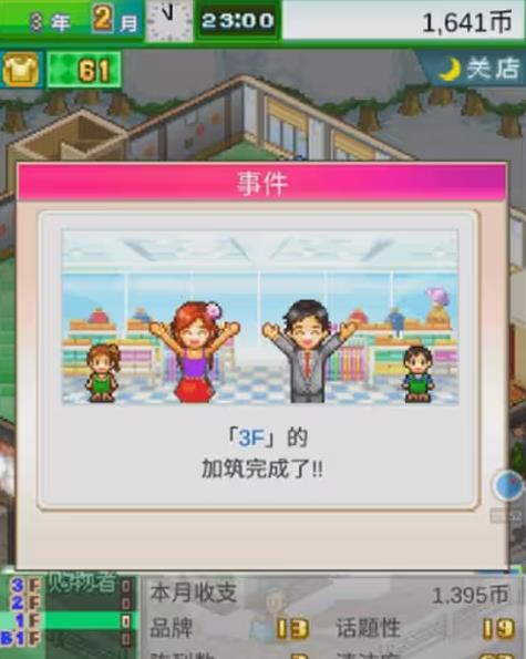 时尚洋品店物语安卓版是一款由开罗推出的经营模拟类型的趣味游戏。在这款游戏中,玩家扮演店主,打造一个独特的时尚服装店,体验经营的乐趣。游戏采用了经典的像素风格画面,视觉体验非常出色,并且拥有丰富有趣的内容。 游戏特色: 1、丰富的经营内容:玩家可以招聘员工、进行培训等等,真实体验经营一个时尚店的过程。 2、经典的放置经营玩法:游戏中采用了放置经营的玩法模式,玩家只需轻松操作即可享受游戏乐趣。 3、独特的时尚店布局:玩家可以自由布置时尚店的内部结构,按照自己的喜好进行布局,提高店铺的吸引力。 4、丰富多样的服装选择:游戏中有男装区、女装区以及无性别服装区,玩家可以从中选择适合不同顾客的时尚服装。 5、魅力值与收益相关:招聘魅力值高的店员能够带来更多的收益,同时也能够提高货物的品味,吸引更多的顾客。 游戏亮点: 1、精美的像素风格画面:游戏采用经典的像素风格,画面细腻精致,给玩家带来视觉上的享受。 2、丰富多样的店员培养:玩家可以通过培训和使用道具提升店员的能力,打造一支专业高效的团队。 3、灵活多变的店铺布局:玩家可以根据自己的喜好进行店铺的布局,让更多的人流进店,增加收益。 4、时尚季节商品更替:根据季节时间的变化,玩家可以更换店内商品,选择当时的人气商品提高收益。 5、充实有趣的经营内容:游戏中有员工招聘、培训,还有更多有趣的经营内容等待玩家探索。 游戏玩法: 1、招聘店员:玩家可以根据需求招聘魅力值高的店员,提高店铺的收益。 2、培养店员:玩家可以使用道具来提升店员的能力,让他们更加专业高效。 3、布置店铺:玩家可以自由调整店铺的内部结构,改变其布局来吸引更多的顾客。 4、更换商品:根据季节时间的变化,玩家可以更换店内商品,提高收益。 5、扩建店铺:随着游戏的进行,玩家可以逐渐解锁更多的楼层,扩大店铺规模。 游戏优势: 1、独特的像素画面风格,给人一种复古又时尚的感觉。 2、丰富多样的经营内容,让玩家能够真实体验开店经营的过程。 3、灵活多变的店铺布局,提供了很大的自由度让玩家根据喜好进行布置。 4、充实有趣的经营内容,玩家可以招聘店员、培训员工等,让整个游戏过程更加有趣且有挑战性。 5、优秀的玩家体验,游戏操作简单易上手,且内容丰富有趣,适合各种类型的玩家。 |