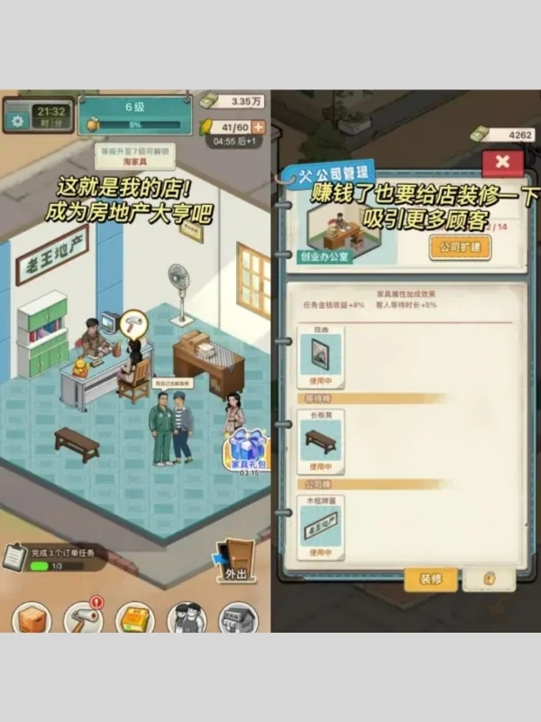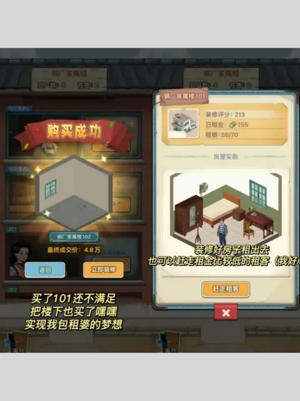 老王的地产梦免广告版是一款由厦门星陨游戏科技有限公司开发的模拟经营游戏。在游戏中,玩家扮演老王成立自己的地产公司,在城市中进行装修和地产交易,通过购买地皮、建设房屋来赚取佣金,最终实现暴富的梦想。 游戏特色: 1、自由经营:玩家可以自由选择装修订单并进行设计,根据顾客的要求和喜好进行个性化的设计,满足不同顾客的需求。 2、低价购地:玩家可以巧妙地观察市场,找到低价的地块并购买。通过适时买入和出售,在合适的时机赚取更多的佣金。 3、挂钩技巧:游戏中的挂钩系统是一项重要的玩法,玩家可以选择不同类型的挂钩来吸引顾客,提高地产的经济效益。 4、招募设计师:游戏中玩家可以招募有经验的设计师,提高设计的质量和顾客的满意度。合理运用设计师的技能,成为顶级的装修专家。 5、美丽建筑:游戏中的建筑设计精美,玩家可以根据自己的喜好选择建筑风格,打造出独一无二的城市景观。 游戏亮点: 1、真实模拟:《老王的地产梦》以真实的房地产市场为背景,模拟了买卖地块、装修设计、租赁物业等真实的经营环节,给玩家带来身临其境的游戏体验。 2、经营策略:玩家需要根据市场需求和土地特点制定经营策略,合理规划地产业务,扩大自己的地产帝国。 3、多样玩法:游戏中不仅可以进行装修设计和地产交易,还可以与其他玩家竞争,争夺市场份额。除此之外,还有挂钩技巧和招募设计师等多样的玩法,增加了游戏的乐趣和挑战性。 4、3D画面:游戏采用了精致的3D画面,打造出逼真的城市环境和美丽的建筑景观,让玩家沉浸在独特的游戏世界中。 5、免广告获得奖励:游戏中没有烦人的广告干扰,玩家可以畅享游戏乐趣的同时还能获得额外的奖励。 游戏玩法: 1、学习基本操作:游戏开始时,玩家需要学习游戏的基本操作,包括购买地块、建造房屋、设计装修等流程,掌握游戏的核心玩法。 2、购买和开发地块:地块是玩家发展的基础,玩家可以购买空地块并在上面建造房屋、商店等物业,通过合理的开发策略逐步壮大自己的地产帝国。 3、管理租金和物业:游戏中的租金是重要的收入来源,玩家需要定期收取物业租金,同时注意管理物业,提高物业的价值和吸引力。 4、市场观察和投资:玩家需要密切观察房地产市场的变化,抓住投资机会,适时购买低价物业,并在市场回升后出售赚取佣金,掌握投资的时机和策略。 5、扩展业务和竞争对手:随着游戏的进行,玩家可以扩展自己的地产业务,开发更多的物业项目。与其他玩家竞争,争夺市场份额,发展成为地产界的一匹狼。通过采取适当的竞争策略,打败竞争对手,最终取得游戏的胜利。 游戏优势: 1、创新玩法:《老王的地产梦》结合了房地产经营和装修设计的元素,为玩家带来独特的游戏体验。 2、自由发展:玩家可以根据自己的喜好和策略自由发展地产业务,体验经营的乐趣。 3、精美画面:游戏采用了精致的3D画面,呈现出逼真的城市环境和建筑景观,增加了视觉享受。 4、挑战性玩法:游戏中的挂钩技巧和竞争对手系统增加了游戏的挑战性,让玩家能够体验到经营的压力和策略的重要性。 5、丰富多样:游戏中有多种玩法和任务,玩家可以根据自己的喜好选择不同的经营策略,保持游戏的多样性和耐玩度。 |