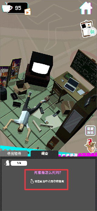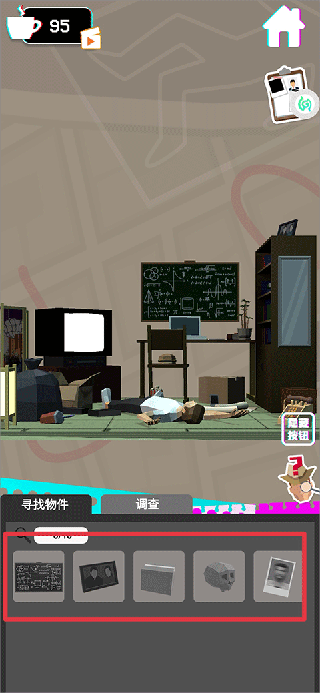 游戏简介: 侦探推理社是一款密室探案类型的推理解谜游戏,玩家将扮演侦探角色,亲身进入案发现场,寻找关键线索,揭开案件背后的真相。游戏以悬疑恐怖电影为原型,以死者的视角直击犯罪现场,带给人一种全新的游戏体验。通过3D立体场景模型,真实还原了案件的各种细节,让玩家能够了解死者的生活习惯。 游戏特色: 1、真实还原案件场景:游戏采用了高精度的3D立体场景模型,细致还原了案件发生时的各种细节。玩家可以透过场景中的物品来了解案件发生的前因后果,感受到真实的犯罪现场氛围。 2、丰富多样的悬疑恐怖故事:游戏以各种悬疑恐怖电影为原型,创造了多个全新的故事。每个案件都独具特色,让玩家能够体验不同的悬疑恐怖氛围,挑战解谜能力。 3、多种寻物模式:游戏中有多种寻物模式,让玩家能够在场景中寻找并点击物体。通过找到线索,玩家可以标记并与场景进行互动,例如打开门锁等。同时,游戏还提供了快速定位功能,让玩家能够轻松找到难以寻找的目标任务。 4、与资深侦探互动:在调查模式中遇到困难时,玩家可以点击侦探头像,邀请资深侦探为自己解答问题。这种互动模式,不仅能够帮助玩家解决难题,还增加了游戏的乐趣。 5、丰富的场景互动:游戏中的场景互动十分丰富多样,玩家可以通过单指滑动屏幕旋转场景,双指滑动屏幕平移场景,双指按压缩放场景。同时,隐藏按钮的出现,也可以帮助玩家在场景中迷失方向时进行四向重置,让游戏更加顺利进行。 游戏亮点: 1、真实感十足的场景还原:通过3D立体场景模型的运用,游戏还原了案件发生时的各种细节。玩家可以深入到犯罪现场,亲身体验探案的刺激与紧张。 2、多样化的悬疑恐怖故事:游戏中创造了多个全新的悬疑恐怖故事,每个故事都独具特色,令人过足了解谜解压的瘾。 3、寻物模式的创新设计:游戏中的寻物模式让玩家能够通过寻找物品来还原案件的发生过程,结合了解谜与推理的元素,提高了游戏的趣味性。 4、资深侦探的解答:在游戏中,玩家可以与资深侦探进行互动,解决困扰自己的问题。这种形式的互动,不仅能够帮助玩家解决难题,还增加了游戏的乐趣。 5、丰富多样的场景互动:游戏中的场景互动丰富多样,玩家可以通过滑动屏幕旋转、平移场景,以及缩放场景,让游戏更具交互性和可玩性。 游戏玩法: 1、通过滑动屏幕旋转场景,寻找关键线索,揭开案件的真相。 2、点击隐藏按钮启用场景的四向重置功能,以便在迷失方向时重新定位。 3、在寻物模式中,通过寻找并点击物体来获取线索。已找到的线索可以用于与场景互动,例如打开门锁等。同时,点击已选中的线索图标,可以查看线索的详细信息。 4、遇到难以找到的目标任务,可以选中未找到的物品,点击放大镜图标进行快速定位。 5、右上角的按键资料板可以展示更详细的按键信息。需要帮助时,可以点击侦探头像,邀请资深侦探解答问题。 游戏优势: 1、逼真的场景还原,让玩家能够身临其境地探索案件现场。 2、多种寻物模式和场景互动方式,增加了游戏的趣味性和可玩性。 3、丰富多样的悬疑恐怖故事,带给玩家不同的挑战和体验。 4、与资深侦探的互动,为玩家提供了解谜的帮助,增加了游戏的乐趣。 5、游戏操作简单易上手,适合各个年龄段的玩家。无论是解谜爱好者还是悬疑恐怖电影迷,都能在游戏中找到乐趣。 |
