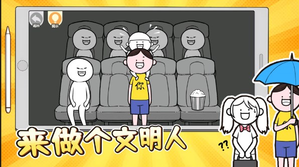 来做个文明人官方版是一款卡通风格的益智游戏,旨在提升玩家的情商及人际交往能力。在这个引人入胜的游戏中,玩家将扮演情商大师的角色,通过学习人际交往的精髓,培养察言观色的能力,妥善处理各种社交场合中的尴尬问题,最终成为真正的文明人,让人们感受到温暖和舒适。