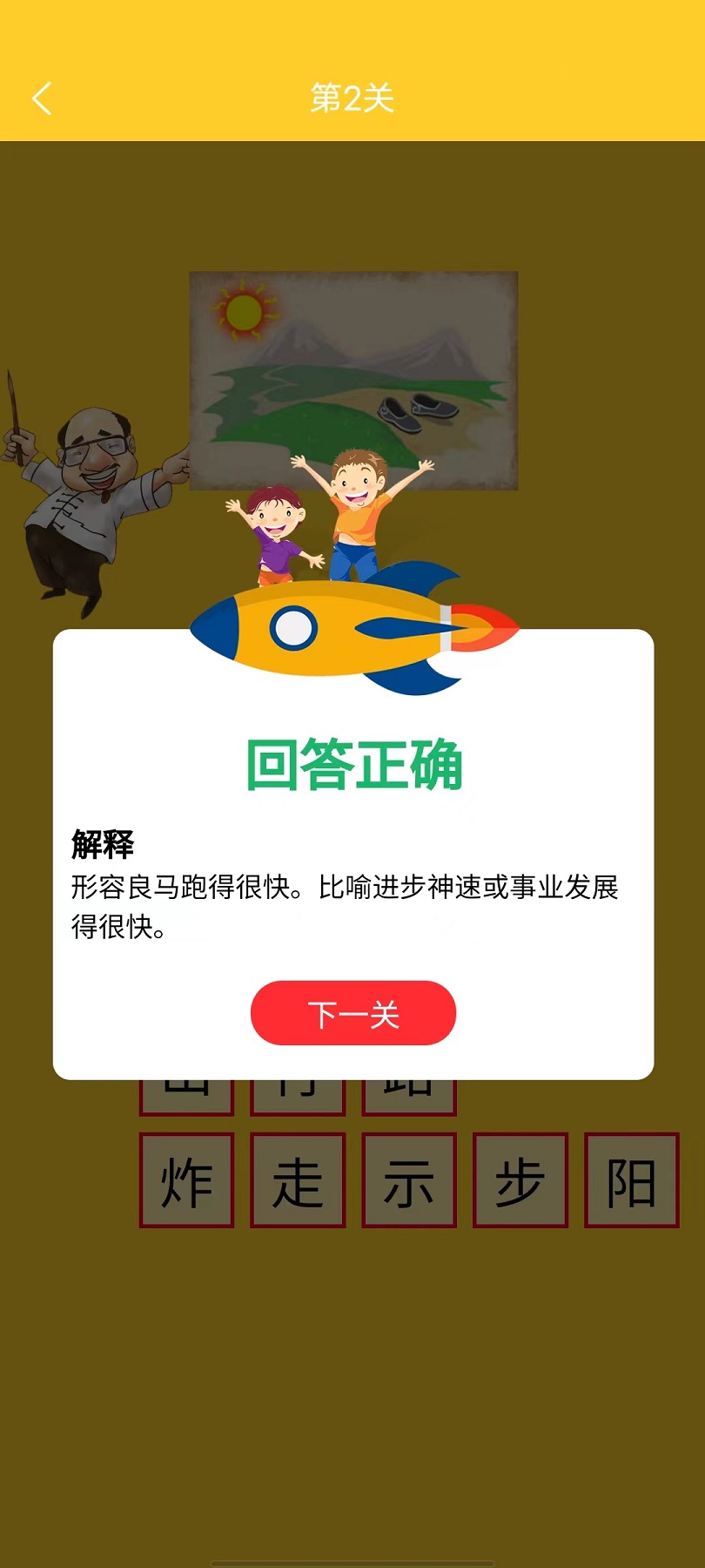 游戏简介: 箫吟成语游戏是一款旨在帮助玩家锻炼中文能力和成语知识的填字游戏。游戏界面简洁清晰,操作易懂,提供了不同的游戏模式,让玩家可以自由选择。游戏中提供了多种提示方法,例如查字库和提示,能够帮助玩家完成难题,通过填字的方式来猜测成语单词。 游戏特色: 1、锻炼中文能力和成语知识:游戏中的填字题目都选自常见的成语,玩家在游戏中不仅能够锻炼中文水平,还能够巩固和巩固成语知识。 2、界面简洁友好:游戏界面简洁清晰,操作简单易懂,玩家可以轻松上手。 3、不同模式选择:游戏提供了自由模式和挑战模式等不同的游戏模式,让玩家可以根据自己的喜好选择游戏方式。 4、提示方法丰富:游戏中提供了多种提示方法,如查字库和提示,帮助玩家完成难题。 5、增加趣味性:成语词汇难度不断升级,增加了游戏的挑战性和乐趣,让玩家可以在游戏中不断提升自己的成语水平。 游戏亮点: 1、成语难度升级:从简单到难中规中矩,增加了游戏的挑战性和乐趣。 2、多种游戏模式:包括自由模式和挑战模式等,让玩家可以根据自己的喜好选择游戏方式。 3、提示工具丰富:游戏提供了多种提示工具和机会,玩家可以通过分享游戏获得更多的提示次数。 4、教育意义深远:游戏的成语单词涵盖了中国传统文化的重要内容,填字的过程中能够起到教育意义。 5、界面音效优美:游戏拥有简洁美观的界面和清晰优美的音效和音乐,营造出轻松愉快的游戏体验。 游戏玩法: 1、通过填字的方式猜测成语单词,按照成语的字数排布题目,在前面有相应的提示词语。 2、根据提示词汇、图片和声音推导出成语,完成每个题目的填写。 3、提供多种提示方法,如查字库和提示,帮助玩家解决难题。 游戏优势: 1、适合大多数人群:是一款快乐的休闲游戏,非常适合广大玩家。 2、良好游戏体验:具有简洁美观的界面和清晰优美的音效和音乐,营造出轻松愉快的游戏氛围。 3、教育意义:涵盖了中国传统文化的成语内容,填字的过程中能够起到教育意义。 4、提升中文能力:让玩家锻炼中文能力和成语知识,提升语言水平。 5、多样化游戏模式:提供不同的游戏模式选择,让玩家可以根据自己的喜好进行游戏,增加了游戏的多样性。 |