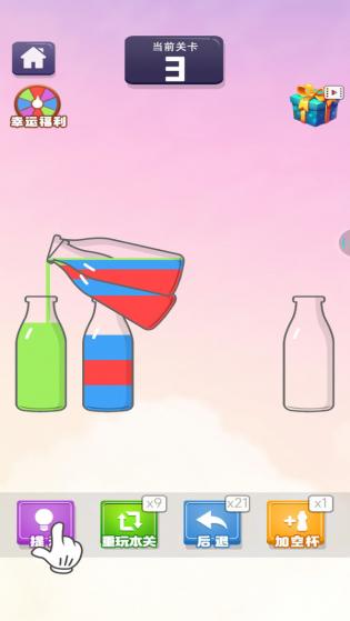 暴走水杯2024官方最新版是一款休闲益智娱乐类游戏,玩家需要感受趣味的水杯谜题,重新排列组合各种混杂在一起的颜料,让它们恢复整齐。游戏拥有非常有趣的闯关玩法,关卡难度逐步增加,挑战玩家的反应能力和智力。 游戏特色: 1、创新的游戏内容,带来多样化的游戏体验,让玩家感受不一样的乐趣。 2、随机的游戏内容,挑战玩家的解谜能力和操作技巧。 3、丰富的道具和特殊能力,帮助玩家更好地完成任务和挑战。 4、精心设计的关卡,让玩家享受挑战的乐趣,不断提升游戏体验。 5、与其他玩家互动,比拼谁能更快地完成关卡,增加游戏的趣味性。 游戏亮点: 1、倾斜或旋转手机来控制水杯,将相同颜色的水倒入相应的瓶子,操作简单而有趣。 2、挑战性的关卡设计,需要玩家在规定的时间和次数内完成分类任务,解锁更高级的关卡和奖励。 3、各种道具和特殊能力的运用,让游戏过程更具策略性和刺激性。 4、不同的游戏陷阱和难度,让玩家享受挑战和突破的乐趣。 5、与其他玩家比拼技巧,展示自己的实力,增加游戏的竞争性与互动性。 游戏玩法: 1、倾斜或旋转手机控制水杯,将不同颜色的水倒入对应的瓶子。 2、利用道具和特殊能力,更好地对水进行分类,完成各种关卡挑战。 3、规定的时间和次数内完成任务,解锁新的关卡内容,获取丰厚奖励。 4、挑战不同级别的任务,提升自己的操作技巧和解谜能力。 5、通过不同的关卡实践,掌握各种技巧和策略,完成游戏挑战。 游戏优势: 1、危险和挑战的存在,让玩家需要快速处理和解决问题,培养反应能力。 2、多样化的游戏陷阱和难度,让玩家享受游戏的乐趣和刺激。 3、道具的运用帮助玩家解决难题,让游戏过程更加顺利和有趣。 4、丰富的游戏体验,让玩家在解谜中不断挑战自我,提升游戏技能。 5、与其他玩家互动比拼,增加游戏的竞争性和社交性,让游戏更具吸引力。 |