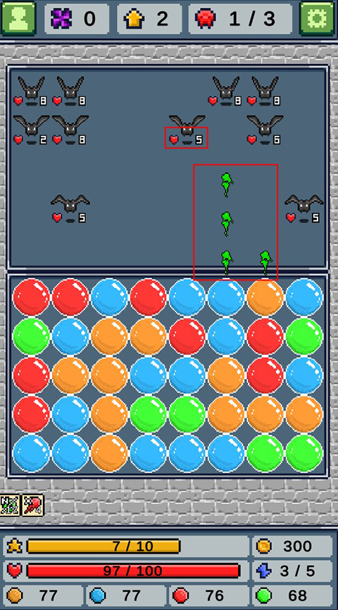 游戏简介: 《元素消除师》是一款消除闯关类游戏,玩家需要通过消除相同元素的小球来攻击前方的敌人,消除的小球越多,造成的攻击也就越多。游戏内有风、火、水、地四种元素小球,玩家可以通过消灭敌人来获取经验,提升等级并解锁新的技能。每次升级都能选择一个强力技能,需要根据技能的特点搭配出强力的技能组合,以提高攻击伤害,快速消灭敌人。 游戏特色: 1、随机生成元素小球,增加游戏的挑战性和趣味性。 2、合成消除,生成攻击,击败敌人,玩家需要灵活运用策略。 3、多种技能选择,每种技能都有独特效果和冷却时间,让玩家可以根据情况选择合适的技能。 4、丰富的关卡设计,游戏难度逐渐提升,让玩家提升技能和战斗经验。 5、特色主题关卡,让玩家可以沉浸在不同的游戏世界和场景中,增加游戏的多样性和趣味性。 游戏亮点: 1、清新可爱的画风和元素小球设计,让游戏更具吸引力。 2、多样的关卡设计,让玩家可以挑战不同难度的关卡,保持游戏的新鲜感。 3、特色主题关卡,让玩家可以探索各种不同的游戏世界和场景,增加游戏的可玩性。 4、丰富的技能选择,让玩家可以根据自己的喜好和游戏情况选择合适的技能,增加游戏的策略性和挑战性。 5、成就系统和等级提升,玩家可以通过消灭敌人获得经验,提升自己的等级并解锁新的技能,增加游戏的持久性和互动性。 游戏玩法: 1、消除相同元素的小球来攻击敌人,消除越多,造成的攻击也就越多。 2、敌人具有血量,玩家需要不断攻击敌人,直至击败,获得经验。 3、玩家通过击败怪物获得经验,提升等级解锁新技能,选择合适的技能组合。 4、注意体力消耗,体力消耗完毕会进入地方回合,怪物会向前走,当怪物越过线时会攻击我方。 5、合理运用技能,提高攻击伤害,快速消灭敌人,通关关卡,获得胜利。 游戏优势: 1、丰富的技能和挑战性的关卡设计,让玩家可以根据自己的喜好和技能选择灵活应对游戏挑战。 2、清新可爱的画风和元素小球设计,增加游戏的趣味性和吸引力。 3、特色主题关卡和多样的游戏场景,让玩家可以体验不同的游戏世界,增加游戏的多样性和互动性。 4、成就系统和等级提升,让玩家可以不断提升自己的能力和技能,增加游戏的持久性和可玩性。 5、策略性的技能搭配和战斗模式,让玩家在游戏中不断思考和挑战,提高游戏的趣味性和挑战性。 |