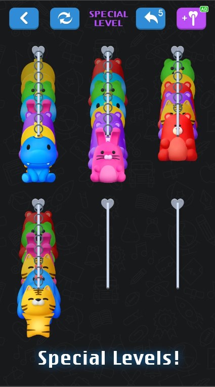 玩具排序排序官网版是一款休闲益智类游戏,玩家需要对立架上五彩斑斓的玩具进行精心整理,将每种颜色的玩具整齐划一地归置在同一层搁板上。游戏规则简单易懂,但随着关卡的逐步提升,挑战也会随之增加。这款游戏不仅适合各年龄段的玩家,而且在轻松愉快的氛围中提供了思维训练和策略规划的乐趣。 游戏特色: 1、简单易懂的规则:游戏规则直观简单,轻松吸引玩家,无需复杂的操作指引即可上手。 2、循序渐进的关卡设计:关卡设计考虑到玩家的成长曲线,逐步增加难度,帮助玩家提升空间逻辑思维能力。 3、实时反馈的动态机制:每次成功完成玩具排列都会得到实时反馈,带来满足感,激发玩家持续挑战的兴趣。 4、多样化的玩具主题设计:玩具种类丰富多样,增加了游戏的趣味性和观赏性,让玩家欣赏到不同款式的玩具。 5、富有挑战性的归置任务:玩家需要动脑筋思考如何最有效地将玩具进行分类排列,增加了游戏的挑战性和乐趣。 游戏亮点: 1、独具匠心的玩具主题设计:玩具主题设计独特,引发了玩家童心未泯的情感共鸣,让人在游戏中感受到无限的童趣。 2、逐步加大的难度:随着关卡深入,游戏引入了更多复杂排列组合,促使玩家不断提升策略规划水平,保持持久的游戏热情。 3、即时反馈及逐步解锁功能:游戏提供实时反馈和逐步解锁新功能,激励玩家不断挑战自我,享受解开颜色谜题的乐趣。 4、丰富多彩的游戏画面:游戏画面色彩丰富,界面简洁明快,配乐轻松愉悦,打造出宁静且有趣味的游戏环境。 5、挑战性与教育性结合:游戏巧妙地结合了挑战性和教育性,让玩家在轻松娱乐中提升解决问题的能力。 游戏玩法: 1、轻触屏幕选取玩具:通过轻触屏幕可以选择任意搁板上的玩具,并将其移动到其他合适的搁板上。 2、遵循同色相连原则:玩家只能将玩具放置在颜色相同且顶部有空位的搁板上,确保玩具精准分类。 3、灵活运用空间资源:玩家需要灵活调整玩具的位置,直至将所有颜色的玩具实现完全分类,完成关卡。 4、思考策略规划:玩家需要动脑思考如何最有效地整理玩具,挑战自己的解决问题能力。 5、挑战通关关卡:每个关卡难度不同,玩家需要不断尝试,找到最佳的排列方式,顺利通关。 游戏优势: 1、简单易懂的规则设计,让玩家能够轻松上手。 2、多样化的关卡设计,保持游戏的新鲜感和挑战性。 3、亲和的画面设计和音乐配乐,营造愉悦的游戏氛围。 4、结合教育性和娱乐性,让玩家在游戏中获得学习和成长。 5、逐步解锁新功能和关卡,增加玩家的持续探索和挑战兴趣。 |
