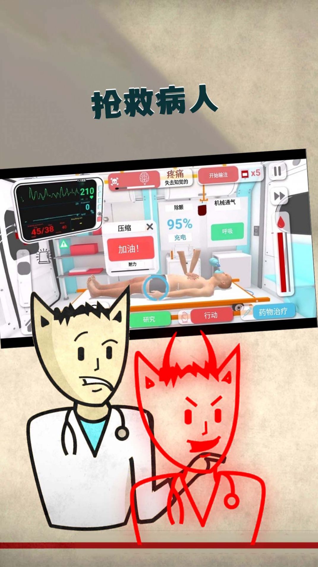 动手大师官方版是一款救援知识丰富的模拟器游戏,玩家将在游戏中体验医疗急救的紧张刺激,挑战自己的医疗技能和决策能力,通过操作虚拟手术器械来救助患者。除了急救任务,玩家还可以学习新的治疗方法和手术技巧,成为一名真正的医疗专家。 游戏特色: 1、学习基本护理操作:玩家将学习如何清洁伤口、包扎、换药等基本护理操作,养成正确的护理习惯。 2、记录患者病情:详细记录患者的病情、治疗过程及医嘱,帮助玩家更好地了解患者的情况。 3、快速识别病症:玩家需要快速识别患者的病症,并准确判断病情,精细操作,掌握各类外科手术技巧。 4、模拟医疗场景:通过模拟医疗场景,玩家可以身临其境地体验医疗工作的紧张和挑战。 5、提升医疗技能:玩家可以不断提升自己的医疗技能,学习最新的治疗方法和手术技巧,成为一名专业的医疗从业者。 游戏亮点: 1、真实感模拟:游戏对医疗急救场景进行真实感模拟,让玩家身临其境地感受医疗工作的紧张和刺激。 2、挑战性任务:玩家需要面对各种紧急情况,迅速做出正确的决策,处理各种急救任务,挽救患者的生命。 3、救死扶伤:玩家可以通过游戏学习如何正确救死扶伤,挽救患者的生命,体验成为一名医疗英雄的快感。 4、多样化的游戏内容:除了急救任务,玩家还可以学习新的治疗方法和手术技巧,不断提升自己的医疗技能。 5、医疗专家体验:通过游戏,玩家可以体验成为一名真正的医疗专家,挑战各种医疗难题,展现自己的医术水平。 游戏玩法: 1、学习护理操作:玩家需要学习如何清洁伤口、包扎、换药等护理操作,培养正确的护理习惯。 2、诊断病情:玩家需要快速识别患者的病症,准确判断病情,按照游戏提示操作手术器械。 3、设备操作:玩家需要熟悉并操作听诊器、血压计、心电图机等设备,准确记录患者的生命体征。 4、急救任务:玩家需要迅速应对突发医疗事件,如心脏骤停、过敏反应,做出正确的急救措施。 5、挑战医疗关卡:玩家需要完成各种医疗关卡,保证每位患者得到及时救治,提升自己的医疗技能。 游戏优势: 1、教育意义:动手大师通过模拟医疗场景,可以帮助玩家学习医疗知识和技能,提高公众的健康意识。 2、挑战性任务:游戏设置了各种挑战性的医疗任务,让玩家体验成为一名医疗专家的快感,挑战自己的医疗技能。 3、真实模拟:游戏对医疗场景进行真实模拟,让玩家身临其境地体验医疗工作的紧张和刺激。 4、多样化内容:除了急救任务,玩家还可以学习新的治疗方法和手术技巧,不断提升自己的医疗水平。 5、提升技能:通过不断挑战医疗任务和关卡,玩家可以不断提升自己的医疗技能和决策能力,成为一名优秀的医疗从业者。 |