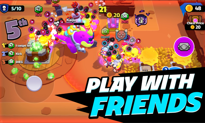 爆裂小队游戏安卓正版全新打造的多人轻竞技MMO手游正式在海外上线!通过谷歌账号登录,玩家可以和其他玩家组队战斗,收集不同的英雄角色,体验3V3和5V5的多人在线战斗模式。画面Q萌可爱,和Supercell旗下的荒野乱斗玩法类似,但提供了更多的角色和战斗模式给玩家尝试。游戏中不少角色都是Supercell旗下其他游戏而来的,比如说卡通农场、部落冲突、海岛奇兵以及皇室战争和荒野乱斗等游戏的角色都能够让你收集到。甚至在爆裂小队游戏中官方还给他们加上了全新的属性和游戏技能,十分有趣,相信可以给你一个新奇的游戏体验。 游戏特色: 1、10位玩家上演史诗对战,地图多变,玩法多样,每场对战充满新乐趣。 2、超过25位角色等待玩家合并和觉醒,从初级角色到高阶角色,每个角色都拥有独特外表和技能。 3、随机事件让游戏更加变化,每场对战都有不同特色,如哥布林战利品、皮纳塔碎片等。 4、集动作、策略和欢乐于一身,玩家可以合理搭配角色,打造强力小队,实现合体部队的战斗。 5、精彩的世界和广受欢迎的角色,探索不同主题的地图,解锁喜爱的英雄和反派角色。 游戏亮点: 1、多元化的地图和战斗模式,让玩家每次对战都能获得全新的乐趣体验。 2、角色觉醒系统,让玩家可以将初级角色升级为高阶角色,拥有更强大的战斗力。 3、随机事件的引入,让玩家每场对战都能面临不同的挑战和机会,增加游戏的可玩性。 4、合体部队的战斗玩法,让玩家能够尝试不同的战术搭配,挑战更高难度的对手。 5、与好友共同组队对战,共度欢乐时光,体验团队合作的乐趣。 游戏玩法: 1、登录游戏,选择角色和地图,组队与其他玩家进行3V3或5V5的对战。 2、通过滑动虚拟摇杆控制角色移动方向,与敌对队伍展开战斗,收集宝石并取得胜利。 3、触发随机事件,获取额外战利品或面临突发挑战,灵活应对以取得优势。 4、合理搭配角色技能,根据战况调整战术,击败对手并获得奖励。 5、与好友组队共度战斗,通过合作打造强力小队,在多变的战斗场景中取得胜利。 游戏优势: 1、多元化的地图和战斗模式让玩家每次游戏都能体验到新鲜感。 2、角色觉醒系统和合体部队玩法提供更多策略性和挑战性,增加游戏深度。 3、随机事件的引入增加游戏趣味性,让玩家每次对战都充满惊喜。 4、与好友共同组队对战,增强社交互动,提升游戏乐趣。 5、精美的画面和独特的角色设计吸引玩家眼球,让玩家沉浸在可爱的游戏世界中。 更新日志: v70301007版本 小队破坏者x变形金刚:在为期两周的活动中,通过在战斗中收集能量,永久解锁擎天柱和埃莉塔-1 限时战斗模式宇宙飞船攻击:与宇宙飞船和威震天坦克作战,获得巨大的能量奖励 Star Chests:获得保证的新角色、超级角色、超角色或终极角色,并加速你的进度 终极进化:释放12种强大的终极进化和奇妙的皮肤 |