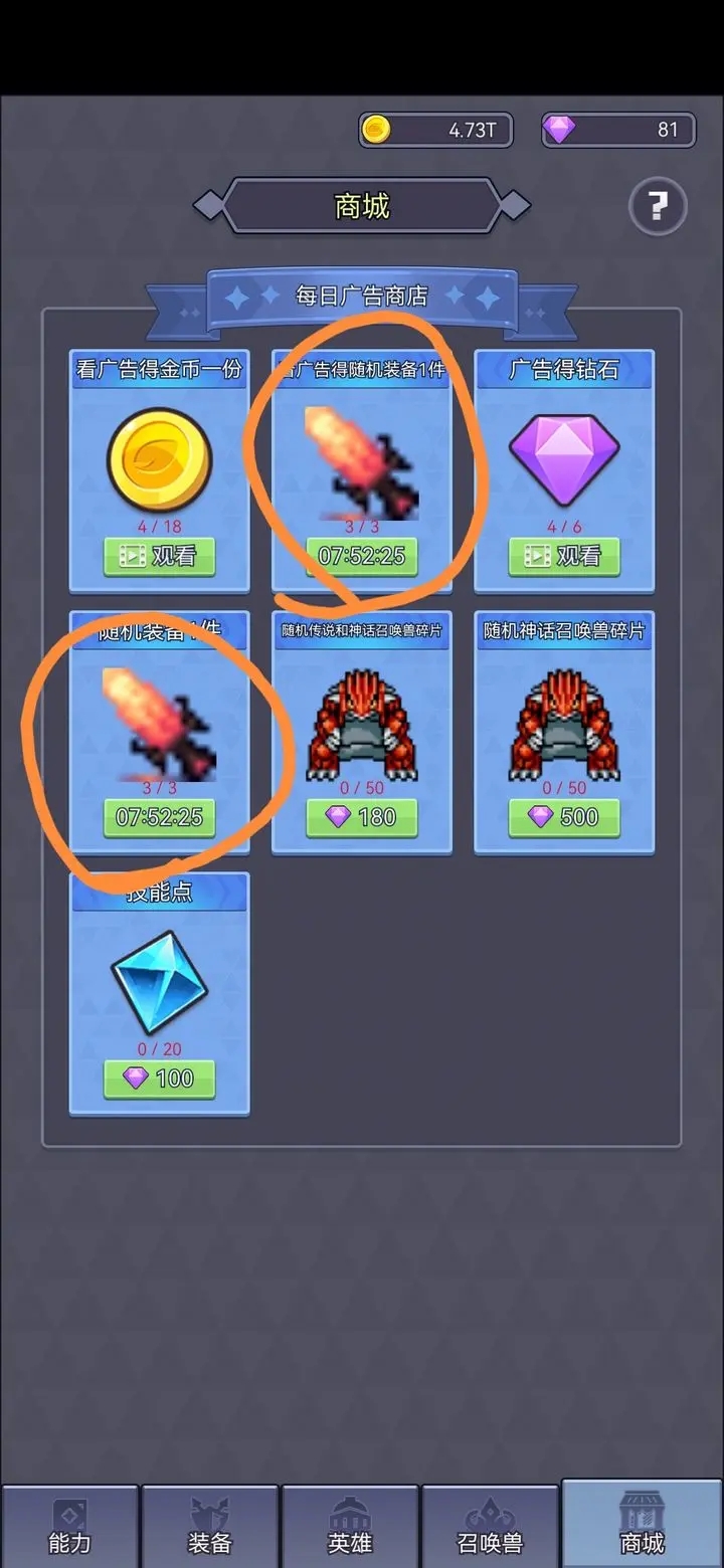 永无止境的挂机官方版是由鱼小齐工作室全新制作的一款挂机放置类游戏,玩法简单,但却极具挑战性和休闲性。玩家需要不断升级推关、召唤各种宠物和装备,纯靠手气来探索无限挑战关卡,让游戏人物变得越来越强,享受无限循环挑战的乐趣。 游戏特色: 1、极具挑战性:游戏中怪物无限加强,要想通关必须不断提升装备和宠物实力,让玩家感受到真正的挑战乐趣。 2、休闲放置:游戏玩法简单易上手,玩家可以放置挂机来轻松升级和收集资源,是休闲玩家的不错选择。 3、无限循环挑战:游戏内容无限循环,让玩家可以持续不断地挑战更高级别的关卡,享受不一样的游戏体验。 4、爽快打怪:游戏节奏快速,玩家可以一边升级一边打怪,体验到爽快的战斗快感。 5、丰富奖励:游戏中有各种丰厚的奖励可以获取,让玩家在游戏中获得成就感和满足感。 游戏亮点: 1、挑战无限:游戏没有终点,让玩家可以不断挑战更高难度的关卡,挑战自己的极限。 2、随机性玩法:游戏中的装备和宠物都是靠手气得到的,让玩家充满期待和惊喜,增加了游戏的趣味性。 3、精美画面:游戏画面精美细腻,怪物设计独特,给玩家带来视觉上的享受。 4、简单操作:游戏操作简单易上手,不需要复杂的操作就可以享受到游戏乐趣。 5、社交互动:游戏中可以邀请好友一起挑战,增加了游戏的社交互动性,让玩家在游戏中结交更多的朋友。 游戏玩法: 1、升级推关:不断提升自己的实力,挑战更高级别的关卡,获取更丰厚的奖励。 2、召唤宠物:通过抽取召唤兽,可以获得各种宠物碎片,提升自己的战斗力,更轻松地通关。 3、挂机放置:玩家可以放置挂机,让游戏自动进行升级和收集资源,节省玩家的操作时间。 4、爽快战斗:游戏中的战斗节奏快速,玩家可以畅快地打怪升级,体验到战斗的乐趣。 5、多样化玩法:除了打怪升级外,玩家还可以挑战不同的活动和副本,获取更多奖励和挑战。 游戏优势: 1、简单易上手:游戏操作简单易懂,适合各年龄段的玩家快速上手。 2、休闲放置:玩家可以放置挂机升级,轻松收集资源,不需要长时间盯着屏幕操作,适合忙碌的生活节奏。 3、挑战性强:游戏中的无限循环挑战让玩家可以不断挑战自己的极限,体验到真正的游戏乐趣。 4、装备宠物丰富:游戏中有各种各样的装备和宠物可以获取,让玩家有更多的选择和策略性。 5、社交互动:游戏中可以邀请好友一起挑战,增加了游戏的互动性和乐趣,让玩家在游戏中不再感到孤单。 开局攻略: 开局可以先看广告和钻石购买,六件装备。打怪掉落先别想了,需要“能力”升级。前面的英雄等级不用升太高,留资源后面开英雄。(资源主要来源依旧是广告,左上角的“宝箱”) |