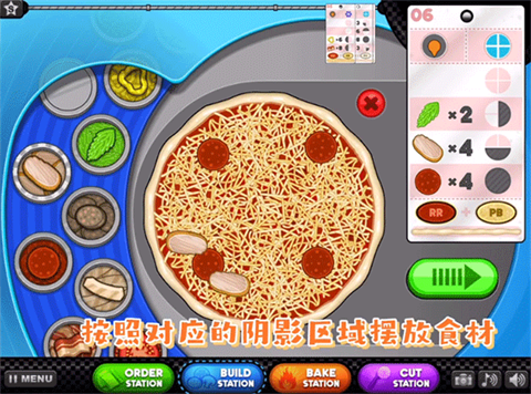 老爹披萨店正版中文是一款经营模拟游戏,玩家将扮演一位披萨店老板,经营自己的披萨店,根据顾客的订单制作披萨,选择设施,添置浇头,烘焙并切割成完美的薄片。游戏通过不断升级解锁更多区域,让玩家享受制作美食的乐趣,展开一段美味的冒险。 游戏特色: 1、真实的操作体验:游戏中的各个工作站提供了真实的操作体验,玩家可以像真正经营一家披萨店一样亲身体验制作过程。 2、多样的任务:游戏中的任务种类多样,从接待客人、点单、添加浇头到烤制比萨饼,玩家需要处理每个细节,并且需要注意细节和专注度。 3、丰富的配料选择:随着游戏的进展,玩家将解锁新的配料供选择,带来更多种类的比萨饼,增加了游戏的乐趣和挑战性。 4、打造吸引人的环境:制作口味完美的披萨可以满足客人,并赚取小费,玩家可以利用小费来升级和装饰比萨店大堂,打造出更吸引人的环境。 5、独特的假日元素:游戏中有12个独立的假日可解锁,每个假日都有更多的成分,让玩家在节日的氛围中制作特殊的披萨。 游戏亮点: 1、真实的操作体验:游戏中的各个工作站提供了真实的操作体验,让玩家可以身临其境地感受经营披萨店的乐趣。 2、丰富的任务内容:游戏中的任务内容多样化,每个任务都要求玩家注意细节和专注度,增加了游戏的挑战性。 3、多样的配料选择:解锁新的配料供选择,让玩家可以制作更多种类的比萨饼,增加了游戏的乐趣和变化性。 4、装饰店铺的乐趣:玩家可以使用赚取的小费来升级和装饰比萨店大堂,打造出更吸引人的环境,让顾客更愿意光顾。 5、独特的假日元素:游戏中的假日元素让玩家可以在特殊的节日氛围中制作特殊的披萨,增加了游戏的趣味性。 游戏玩法: 1、接待客人:玩家需要接待顾客,引导他们到合适的位置坐下。注意客人的需求和喜好,根据顾客的订单制作披萨。 2、点单和添加浇头:根据顾客的订单选择合适的浇头,并将浇头均匀地加到披萨上,确保每一块披萨都有足够的浇头。 3、烤制比萨饼:将披萨放入烤箱中烤制,掌握好时间和温度,确保披萨烤制得恰到好处。 4、切割成完美的薄片:将烤好的披萨切割成完美的薄片,确保每一块披萨都有均匀的厚度和形状。 5、升级和装饰:使用赚取的小费来升级和装饰比萨店大堂,吸引更多的顾客光顾。还可以解锁新的配料和假日元素,增加游戏的乐趣和挑战性。 游戏优势: 1、真实的操作体验:游戏中的工作站提供了真实的操作体验,让玩家像真正经营披萨店一样亲身体验制作过程。 2、丰富的任务内容:游戏中的任务内容多样化,每个任务都要求玩家注意细节和专注度,增加了游戏的挑战性和趣味性。 3、多样的配料选择:解锁新的配料供选择,玩家可以制作更多种类的披萨饼,增加了游戏的乐趣和变化性。 4、装饰店铺的乐趣:玩家可以使用小费来升级和装饰比萨店大堂,打造出更吸引人的环境,增加了游戏的可玩性。 5、独特的假日元素:游戏中的假日元素让玩家可以在特殊的节日氛围中制作特殊的披萨,增加了游戏的趣味性。 怎么制作满分披萨: 1、首先选择对应的面饼酱料和芝士。 2、注意要在虚线圈范围最大的时候再点击酱料,这样会全铺在披萨饼上。 3、接着按照右图中对应的阴影区域摆放食材。(材料分配要平均) 4、切成四瓣,记得在商店买切割指导,切披萨时会显示一个虚线,按照虚线切割即可。 |