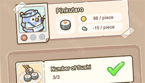 小企鹅的寿司摊游戏是一款充满趣味的放置经营游戏,玩家将扮演企鹅经营寿司店的角色,向潜水大师一样获取食材并制作美味寿司,为顾客提供最佳美食。通过不断升级店铺和招募员工,享受欢乐的经营时光。 游戏特色: 1、放置玩法:即使闲置也能获得丰厚奖励,轻松解放双手,获得更多收益。 2、员工系统:招募不同能力的员工,放置在合适的岗位,提升整体收益。 3、多样化客人:各种风格的客人前来光顾,完成任务获得奖励,提升店铺评价。 4、美食制作:自由制作各种美味食物,解锁全新美食图鉴,完成寿司收集。 5、可爱画面:卡通画面风格,场景精致可爱,眼睛享受治愈的视觉体验。 游戏亮点: 1、升级店铺:持续对店铺进行升级,解锁新功能和设施,吸引更多客人光顾。 2、员工培训:定制员工,为他们进行培训,提高工作效率。 3、多样化食物:制作各种不同美食,挑战自己的厨艺,让客人大饱口福。 4、丰富奖励:完成任务获取丰厚奖励,解锁新内容,增加游戏乐趣。 5、社交互动:与其他玩家交流经营心得,分享游戏乐趣,打造属于自己的寿司王国。 游戏玩法: 1、解锁员工室:使用金币和星星解锁员工室,让员工休息并完成与他们对话的任务。 2、招募员工:根据员工不同能力放置岗位,提高整体效率。 3、完成任务:满足客人需求,完成任务获取奖励,提升店铺评价。 4、升级店铺:持续升级店铺和设施,吸引更多客人,提高盈利。 5、挑战自我:挑战各种不同任务,提升自己的经营技能,成为真正的寿司大师。 游戏优势: 1、放置轻松:即使离开游戏也能获得奖励,无需长时间盯着手机。 2、多样化玩法:员工系统、食物制作、店铺升级等多样化玩法,乐趣无穷。 3、可爱画面:卡通风格画面,精致可爱,让玩家享受可视化治愈体验。 4、社交互动:与其他玩家交流经营心得,分享乐趣,增加游戏的互动性。 5、挑战性十足:挑战各种任务和游戏内容,提升自己的技能,成为真正的经营大师。 怎么玩: 1、打开游戏,来到下方界面后,点击屏幕右方或者滑动至右方即可。 2、解锁员工室需要500金币以及一颗星星。 3、当员工一次处理多个订单之后,员工就会到员工室休息,此时就可以完成与员工在员工室对话的任务了。 小编推荐: 愿你在小企鹅的寿司摊中享受每一份美味,成为独一无二的寿司大师! |