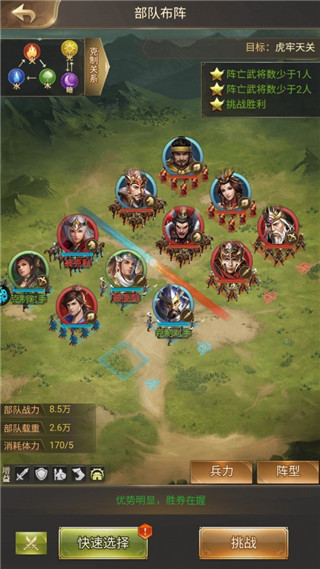 游戏简介: 《主公别闹-国风》是一款以三国背景为基础的即时战斗游戏。游戏中,玩家可以体验到炫酷的战斗画面和丰富多样的玩法,让玩家沉浸在三国世界的战斗中。 游戏特色: 1、放置玩法:游戏采用放置卡牌和布置阵型的方式进行战斗,让玩家更加轻松地享受游戏乐趣。 2、卡牌收集:游戏中有丰富的卡牌系统,玩家可以收集各种英雄和战斗单位卡牌,用于组建强大的战斗队伍。 3、策略对战:玩家需要在放置卡牌和调整阵型的过程中,运用策略来应对不同的敌人和战斗局势,增加了游戏的策略性和乐趣性。 4、社交互动:游戏中有多种社交玩法,玩家可以组建公会、与其他玩家合作攻打副本,还可以进行PvP对战,增加了游戏的社交和竞技乐趣。 游戏亮点: 1、精彩战斗:游戏中的卡牌战斗画面流畅,技能特效炫丽,让玩家可以感受到战斗的紧张和刺激。 2、丰富的玩法:除了主线剧情关卡外,游戏还有竞技场对战、公会战、挑战副本等丰富多样的玩法,让玩家有更多的游戏乐趣。 3、策略玩法:游戏以轻松清爽的方式打造最强战力,策略的组合能让玩家的战力暴涨。 4、即时动态战斗:游戏中卡牌的英雄以模型形象制作,并动态地进入战场,战斗以系统自动为主,玩家可以实时观赏整个战斗过程,增加了游戏的视觉享受。 5、丰富的副本系统:游戏中有普通副本、精英副本、传记副本、日常副本等各种副本玩法,让玩家可以在三国世界中尽情挑战。 游戏玩法: 1、开始游戏后,选择角色头像和取名; 2、刷普通副本获取资源; 3、摆放好卡牌的位置,自动释放技能; 4、商城招募高级武将; 5、角色培养包括升级、升阶、穿戴装备、装备强化等。 游戏优势: 1、多样化的玩法,让玩家有更多选择的乐趣; 2、精美的画面和特效,提升游戏的视觉体验; 3、轻松愉快的游戏玩法,让玩家可以在游戏中放松心情; 4、社交互动的机制,增加了游戏的趣味性和竞技性; 5、丰富的副本系统和策略对战玩法,让玩家在游戏中尽情挑战,不断提升自己的战斗能力。 |