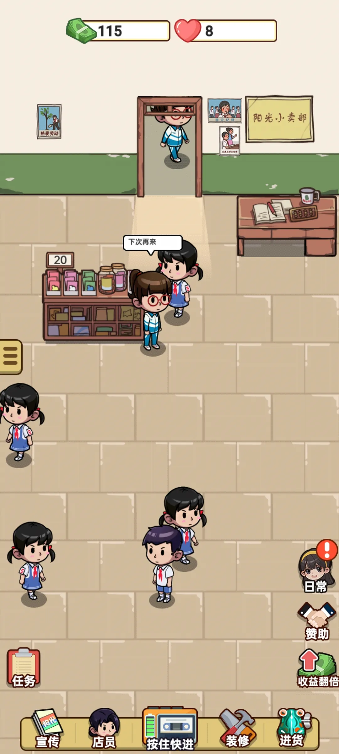咸鱼也有翻身日官网2024最新版是一款小卖部模拟经营游戏,玩家可以扮演一位经营小卖部的老板,在游戏中经营失败后回到家乡重新开始创业。玩家需要从选址到货物进购,全方位操作自己的小卖部,并通过合理摆放商品和制定价格标注来吸引顾客,不断扩大规模,赚取更多的金钱。 游戏特色: 1、模拟经营:玩家可以体验真实的小卖部经营,从布置店铺到接待顾客,一手打理自己的事业。 2、购买道具:在商店中购买各种道具,丰富小卖部的商品种类,吸引更多顾客来店购物。 3、快速进货:可以选择不同的商品进行进货,满足顾客对各种商品的需求,提高销售额。 4、解锁策略:根据自己的喜好和经营策略购买商品,赚取更多的财富并扩大小卖部规模。 5、人生模拟:体验真实的人生模拟玩法,感受经营一家小卖部的乐趣和挑战,内含丰富多样的玩法内容。 游戏亮点: 1、休闲放置经营:轻松愉快的游戏体验,放置经营让玩家在游戏中体验经营乐趣。 2、简单易玩:游戏操作简单,容易上手,适合各种年龄层玩家进行游玩。 3、丰富任务:游戏内有多样化的任务等待玩家完成,解锁更多内容和奖励。 4、多样化经营:玩家可以根据自己的策略经营小卖部,尝试不同的经营方式获得更多收益。 5、全新体验:《咸鱼也有翻身日》带给玩家全新的经营体验,让玩家享受经营的乐趣和成就感。 游戏玩法: 1、选择货架:在店铺内购买货架,摆放不同种类的商品,吸引顾客。 2、接待顾客:当顾客进店选择商品时,点击顾客头顶的气泡为其提供需要的商品,加速结账。 3、宣传推广:在店外发放传单,吸引更多顾客前来购物,提升销售额。 4、完成任务:每日任务奖励丰富,在游戏中完成任务可以获得额外奖励。 5、扩大规模:通过不断经营积累财富,扩大小卖部规模,提升经营能力。 游戏优势: 1、真实体验:《咸鱼也有翻身日》让玩家体验真实的小卖部经营,感受经营的乐趣和挑战。 2、丰富内容:游戏内包含丰富的物品种类和任务等内容,让玩家有更多元化的游戏体验。 3、简单操作:游戏操作简单易上手,适合各种玩家进行游玩,让玩家轻松享受游戏乐趣。 4、挑战性玩法:游戏中有各种挑战等待玩家完成,让玩家在游戏中不断提升自己的经营技能。 5、放置经营:放置经营让玩家可以轻松管理店铺,享受休闲放置游戏带来的乐趣和成就感。游戏让玩家体验到小卖部经营的乐趣,以及如何通过合理的经营策略扩大规模,赚取更多的金钱。 |