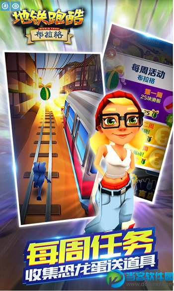 地铁跑酷是一款超炫酷的3D竖版跑酷手游,总注册用户高达2.4亿,游戏画面绚丽精致,色彩丰富让人感觉舒服,操作上非常流畅,本次版本更新来到历史名城布拉格,一起来畅游满满时代感的布拉格之旅吧! 【版本特色】 新场景布拉格,历史名城等你畅跑; 新角色雅罗,服饰装扮满满时代感; 雅罗新装扮,小丑装扮喜感十足; 新增滑板,独角兽滑板精致可爱; 每周任务,收集恐龙蛋送道具。 【游戏亮点】 最经典最时尚的3D跑酷手游 简单的上手操作 丰富的游戏画面