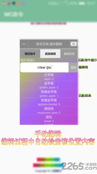 mc命令助手最新版是一款专为我的世界玩家打造的手机辅助软件,能够帮助玩家更方便地游玩游戏,提供最全的命令指令,让玩家可以边游戏边输入指令处理问题。 软件特色: 1、全面的命令指令库,让玩家可以更方便地使用各种指令完成各种任务; 2、悬浮窗形式在游戏中编辑、复制、粘贴指令,操作更加便捷; 3、支持zip存档导入和导出,方便玩家管理存档; 4、提供mc设置功能,让玩家可以自定义一些游戏参数; 5、感谢@Arbitraryジ的提醒,让玩家更加便利地使用软件。 软件亮点: 1、提供常用加载区块指令,让玩家可以更加灵活地管理游戏世界; 2、支持附魔功能,比如忠诚,让玩家可以给自己的武器进行强化; 3、界面简洁明了,操作简单易上手; 4、及时更新内容,保持软件功能的新鲜度; 5、提供在其他应用之上显示内容的功能,让玩家可以在游戏外方便查找指令。 操作指南: 1、在游戏中使用悬浮窗编辑、复制、粘贴指令,完成各种任务; 2、搜索需要的命令指令,并根据实际情况进行输入和操作; 3、导入、导出存档,管理自己的游戏进度; 4、根据需要自定义mc设置,使游戏体验更加个性化; 5、随时随地查找指令,提升游戏技能,解决游戏中遇到的问题。 软件优势: 1、简单易用的操作界面,即使是新手也能轻松上手; 2、全面覆盖的命令指令库,满足玩家各种游戏需求; 3、支持悬浮窗功能,让玩家可以边玩游戏边查找指令; 4、不断更新的内容和功能,保持软件的优势和竞争力; 5、提供个性化的mc设置和各种实用功能,让玩家可以更好地享受游戏乐趣。 软件测评: 通过MC命令app,玩家可以更加便捷地游玩我的世界,提升游戏体验,解决游戏中遇到的各种问题,是每位玩家必备的手机辅助软件。赶快体验吧,享受游戏的乐趣! 更新日志: · zip存档导入。 · 存档导出为zip。 · mc设置。 · 感谢@Arbitraryジ 提醒: · 常用加载区块指令。 · 附魔:忠诚。 |