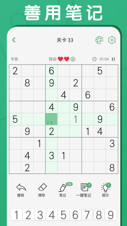游戏简介: 《我的掌上世界数独算数游戏》是一款手机数独游戏,通过逻辑推理和数学计算来填满所有的空白格,是一款非常考验玩家智力的休闲益智游戏。游戏操作简单,老少皆宜,让玩家在轻松愉快的游戏氛围中挑战自己的智力,享受数独的乐趣。 游戏特色: 1、轻松舒适的背景音乐和音效让玩家放松心情; 2、简单的点击操作即可填写数字,操作流畅便捷; 3、玩家需观察格子中的数字,运用规则和思维能力来确定格子应填的数字,挑战自己的逻辑推理能力; 4、多种难度等级供玩家选择,能够满足不同玩家的需求; 5、海量关卡等待挑战,游戏乐趣无穷尽。 游戏亮点: 1、锻炼个人脑力的最愉悦方式,随时随地开启挑战; 2、通过完美衔接不同数字来完成脑力碰撞,激发玩家思维; 3、九宫格数独填写数字正确即可,数独规则简单易懂,挑战越来越有趣; 4、游戏关卡丰富多样,无限挑战等待玩家来解锁; 5、豁达游戏氛围,让玩家在轻松愉快的氛围中享受游戏的乐趣。 游戏玩法: 1、点击屏幕空白格填写数字; 2、观察周围数字确定空白格应填数字; 3、根据数独规则填出所有数字,获得游戏胜利; 4、挑战不同难度等级的关卡,提升自己的逻辑推理能力; 5、用最短的时间填出所有答案,获取高分成就。 游戏优势: 1、提升玩家智力的闯关休闲游戏,简单的操作容易上手; 2、不限挑战让玩家体验无尽乐趣,享受数独游戏的休闲时光; 3、数独规则简单易懂,让玩家充分享受游戏乐趣; 4、多样的关卡设计和挑战模式,让玩家体验不同难度挑战; 5、轻松愉快的游戏氛围,让玩家放松心情,享受游戏的乐趣。 |
