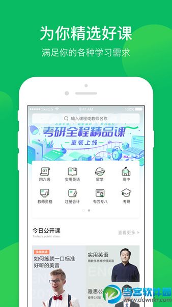 有道精品课app是网易旗下网易有道公司出品的在线教育产品。课程涵盖了高中英语、高中数学、四六级、专四专八、考研、英语口语、托福雅思、注会、教师资格证等多个品类,上千门优质课程。有道精品课强调课程的独特与深度,精心打磨每一类细分领域的课程品质,并邀请各领域内顶尖名师独家合作,旨在为用户提供最优质的学习体验。