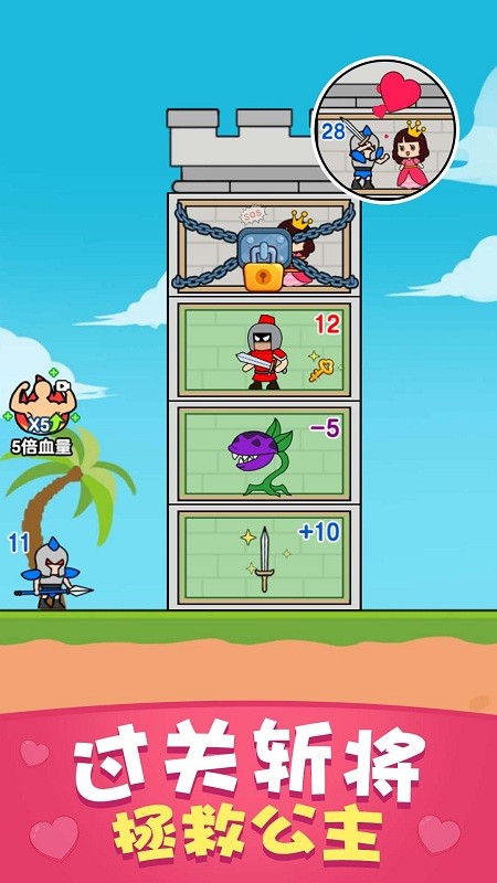 游戏简介: 《兵临城下》是一款极具趣味性的策略爬塔游戏。在游戏中,玩家将扮演士兵,通过制定策略和战术来完成战斗,拯救被困在城堡中的公主。游戏拥有精致亮丽的画面制作,玩家可以挑战各种层次的关卡,每一关都充满乐趣和挑战。 游戏特色: 1、简单直观的城堡关卡设计,让玩家能够轻松上手; 2、搞怪有趣的画面风格,美丽的公主形象让游戏更具吸引力; 3、丰富多样的道具和宝箱,增加了游戏的趣味性和可玩性; 4、挑战玩家的逻辑能力、反应能力、快速记忆能力和创造力; 5、战斗胜利后可以获取敌人的属性,不断强化自己,成为超强小兵。 游戏亮点: 1、画面品质极佳,每一幕都令人惊艳,视觉盛宴; 2、不断挑战更高级别的任务,奖励丰厚,令人兴奋不已; 3、多样的玩法内容,持续吸引玩家,让游戏体验更加过瘾; 4、玩家可以探索超大地图,收集资源,体验冒险的乐趣; 5、 |